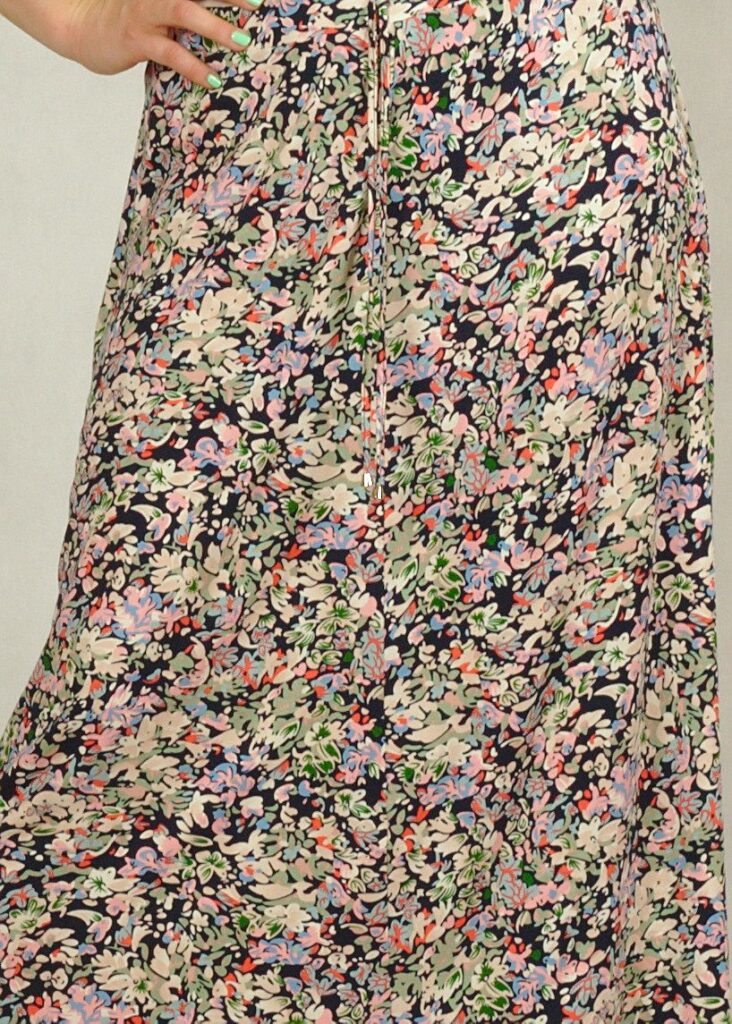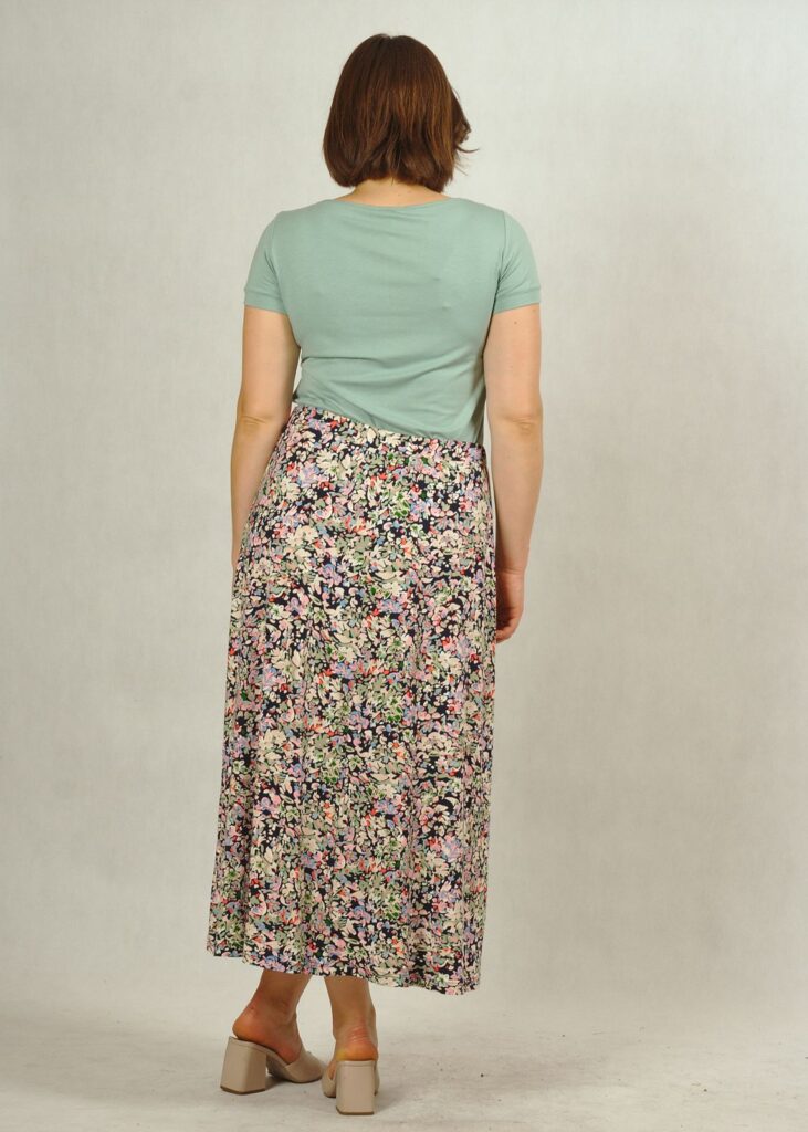 Kolorowa spódnica jest odpowiednia na co dzień, może się sprawdzić też na różne okazje – wszystko zależy od dodatków! Wielokolorowe kwiatki to śliczny print, który przypadnie Ci do gustu.