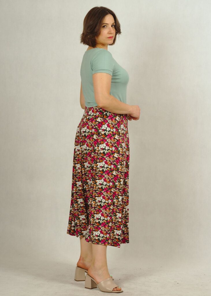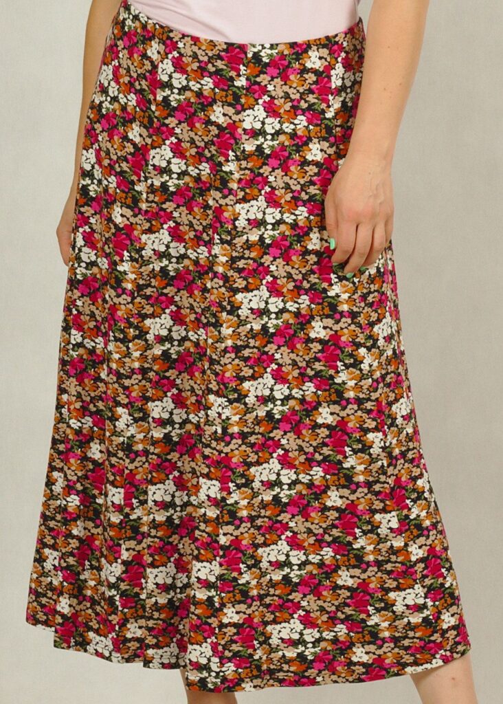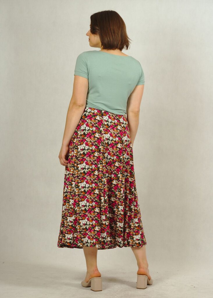 Kolorowa spódnica jest odpowiednia na co dzień, może się sprawdzić też na różne okazje – wszystko zależy od dodatków! Wielokolorowe kwiatki to śliczny print, który przypadnie Ci do gustu.