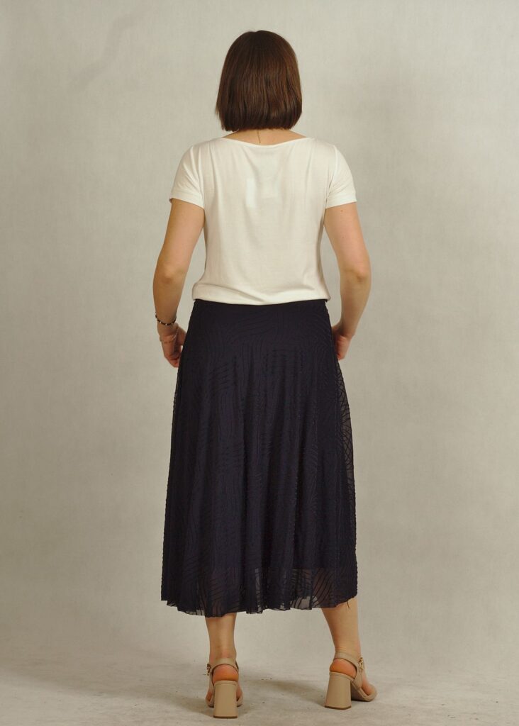 To spódnica granatowa z delikatną mozaiką.