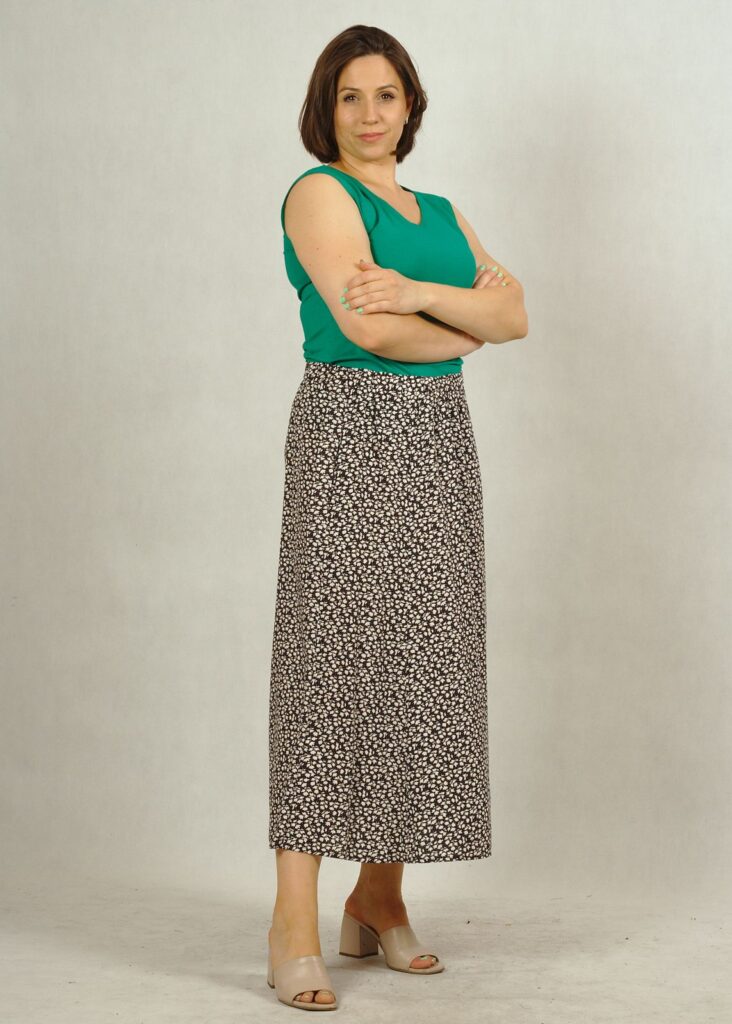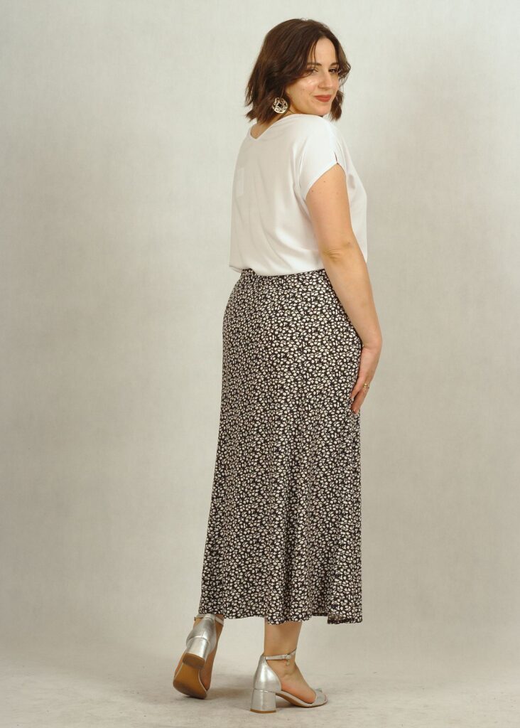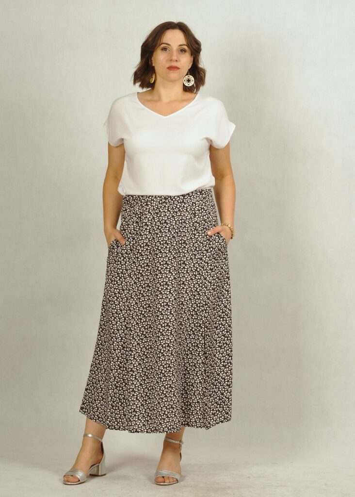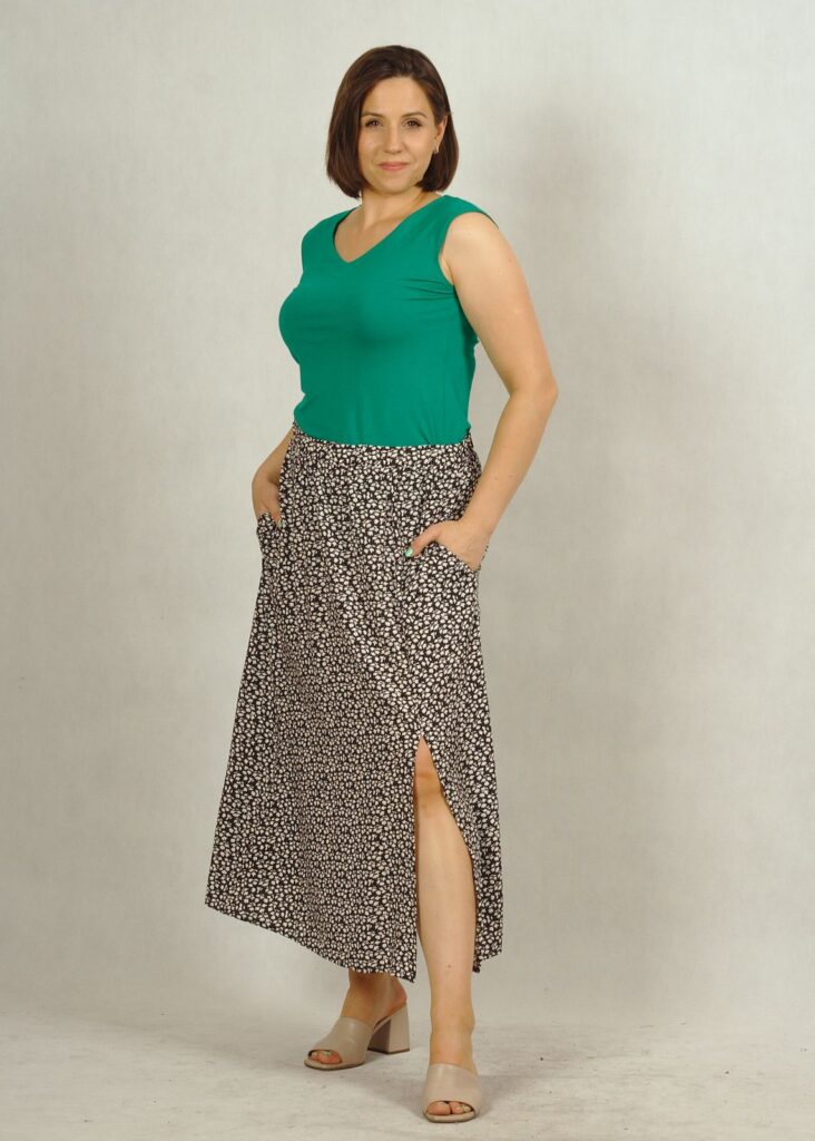 Spódnica uszyta z wiskozy 100%.