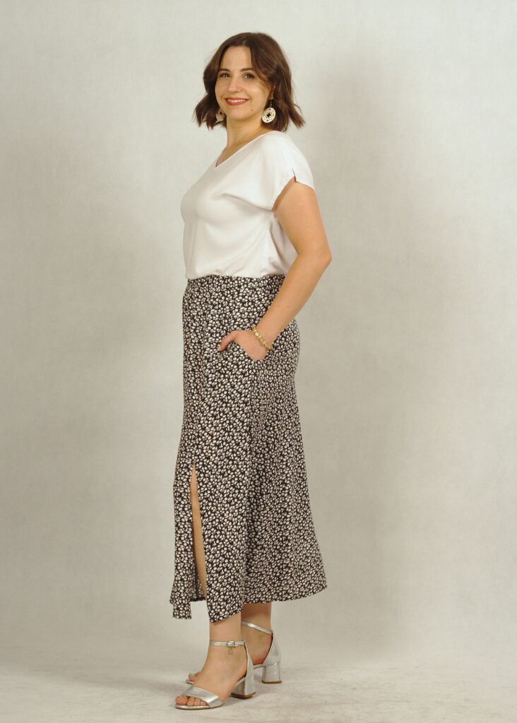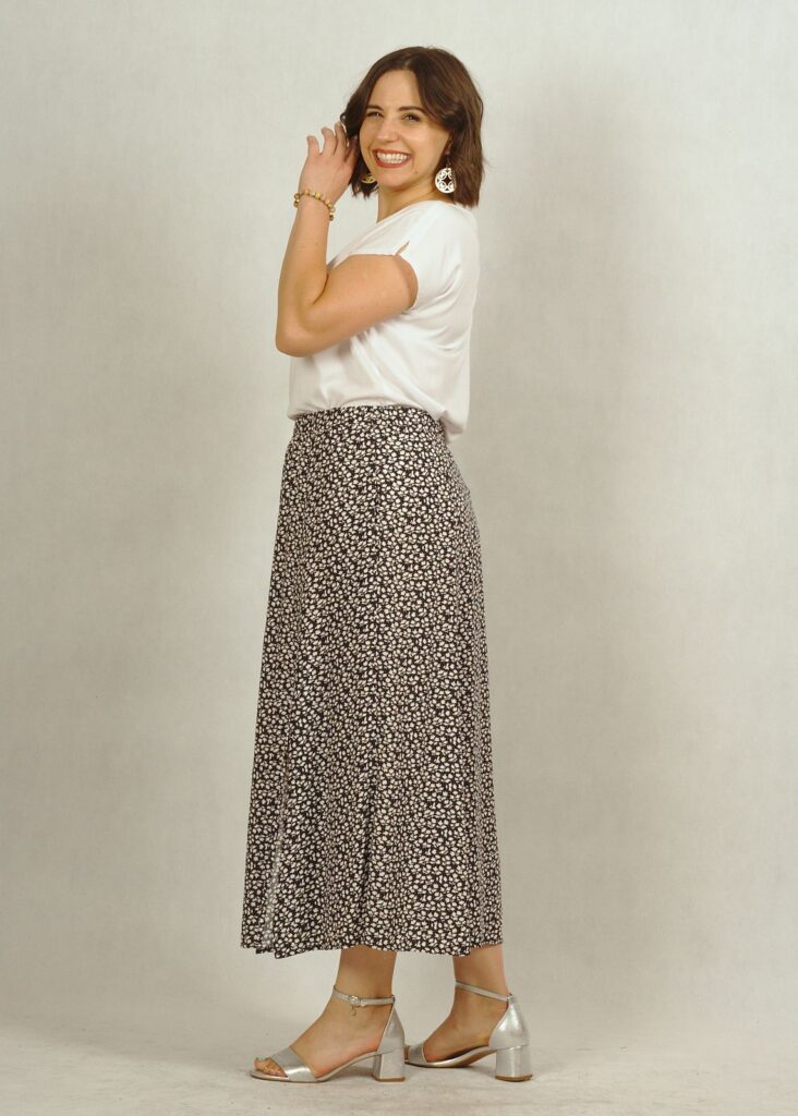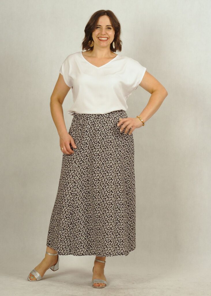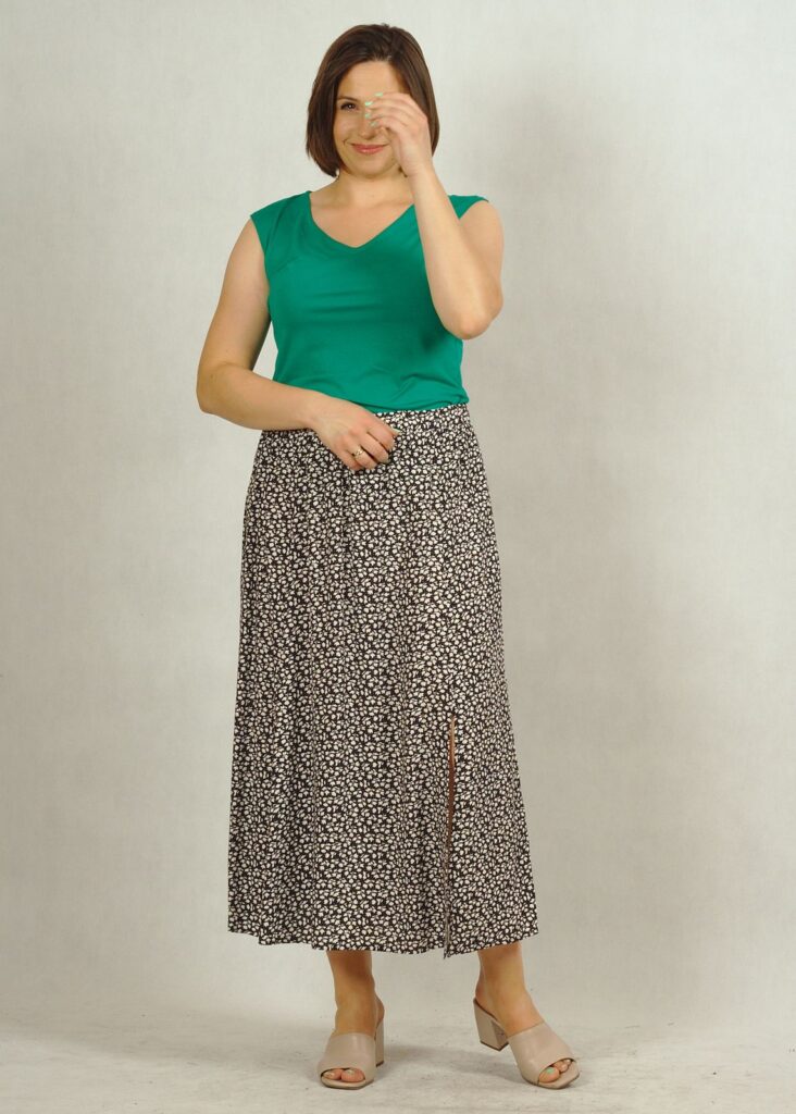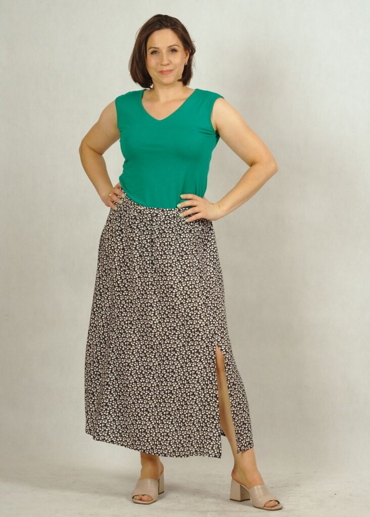 Spódnica uszyta z wiskozy 100%.