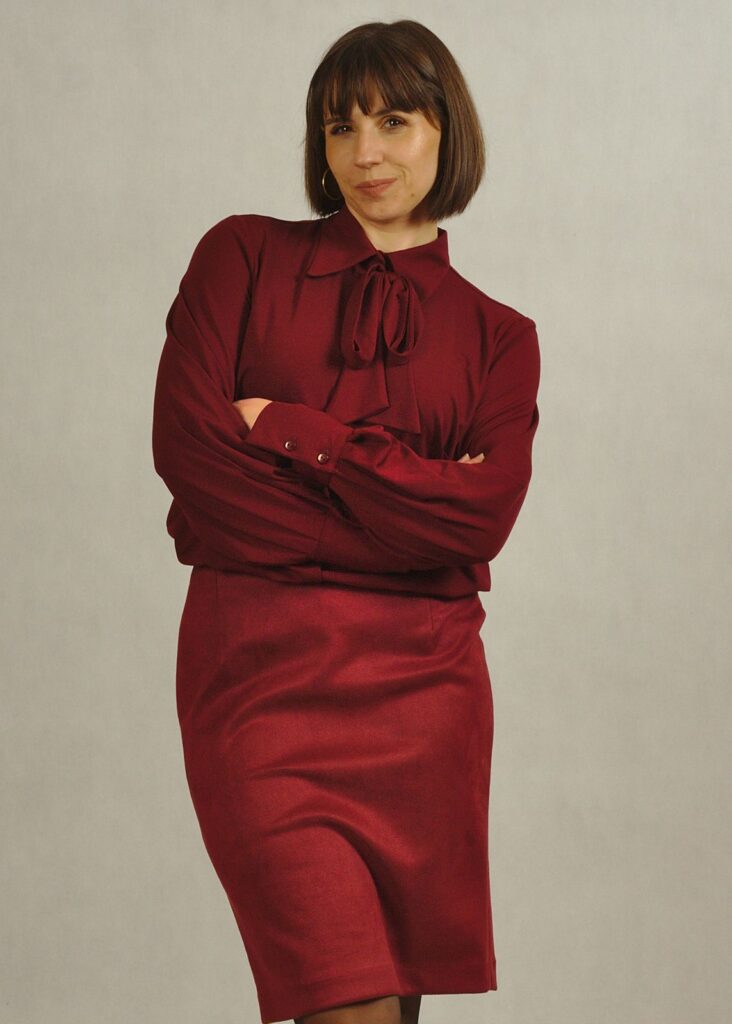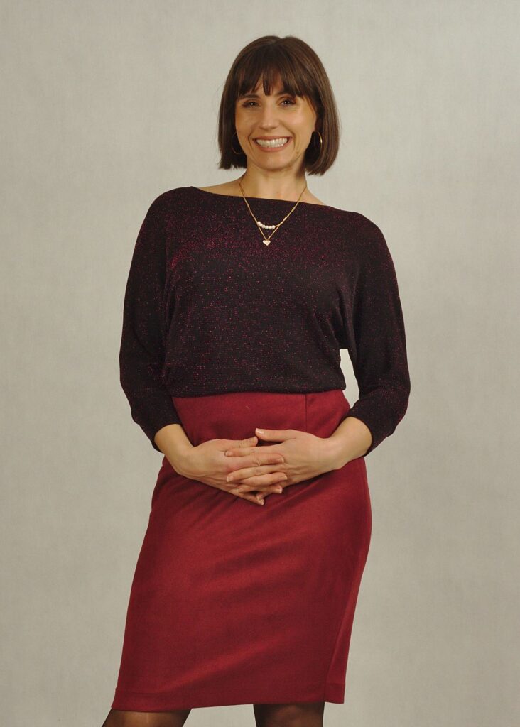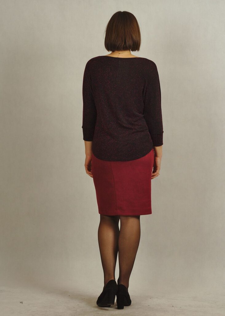 W zależności co dobierzemy na górę, ustalimy charakter spódnicy. Można dopasować do niej sweterek, bluzkę, a na to dobrać żakiet lub pasujący do niej kardigan.