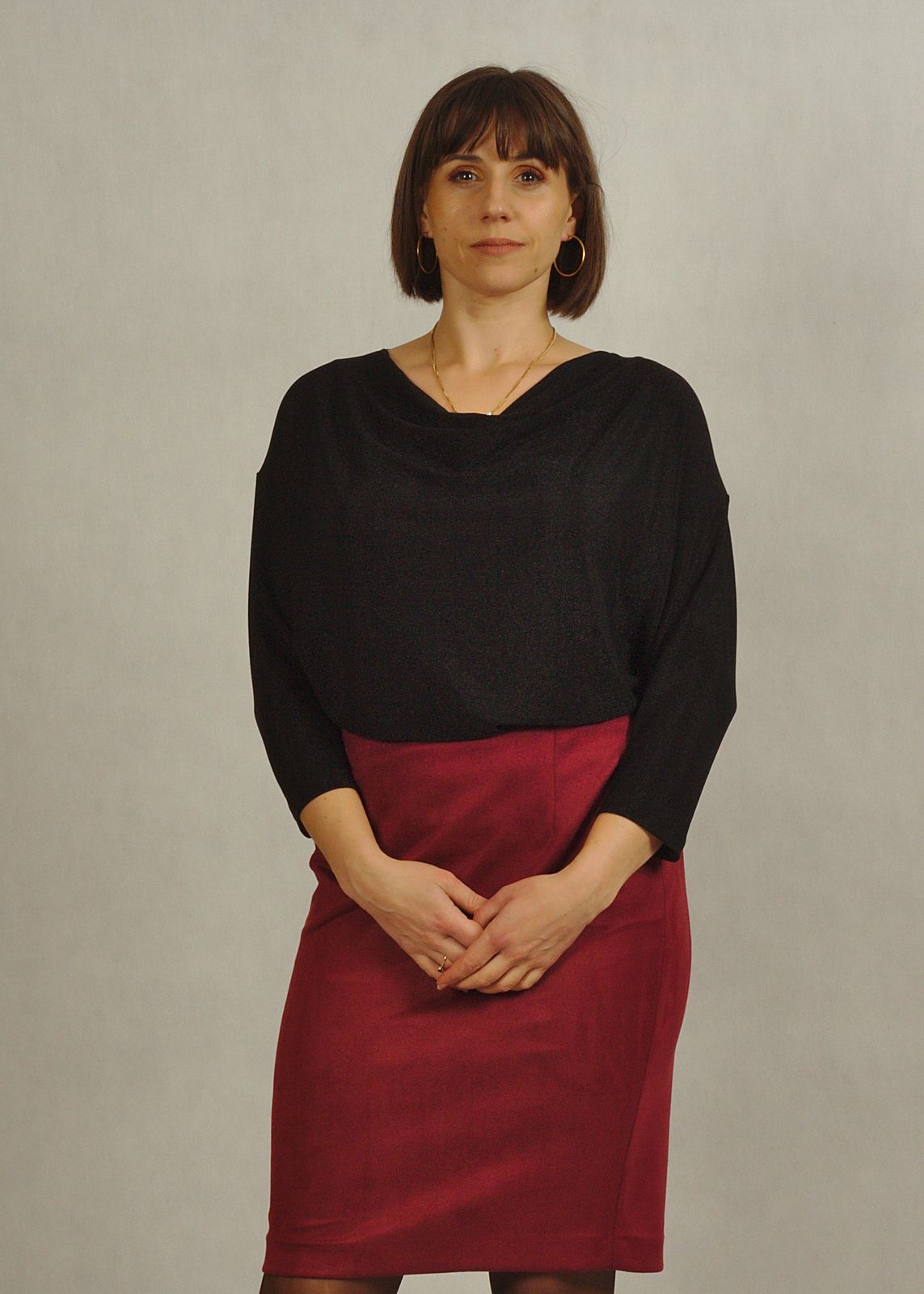 W zależności co dobierzemy na górę, ustalimy charakter spódnicy. Można dopasować do niej sweterek, bluzkę, a na to dobrać żakiet lub pasujący do niej kardigan.