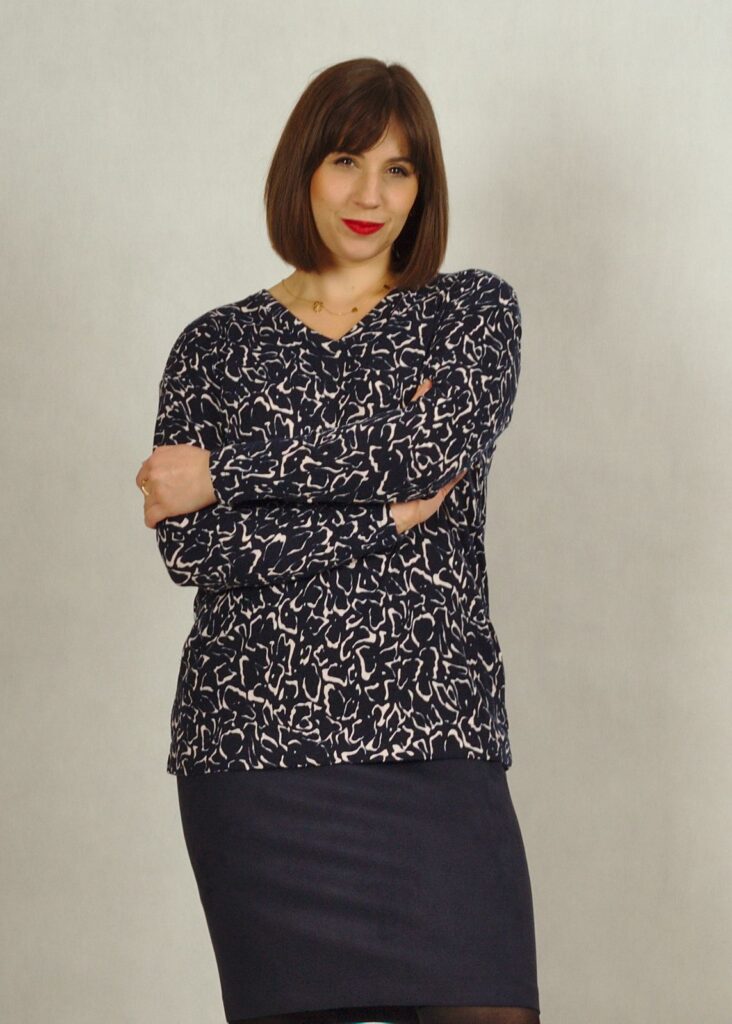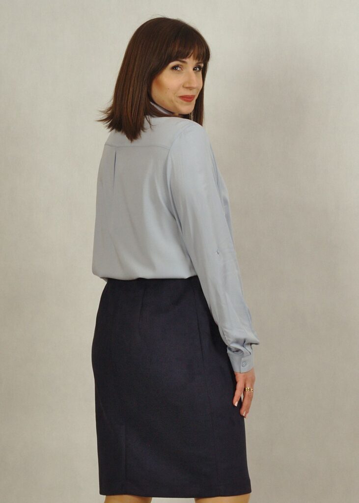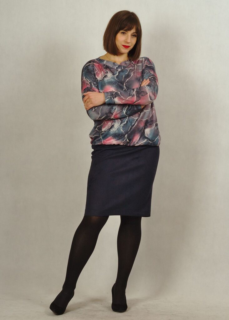 W zależności co dobierzemy na górę, ustalimy charakter spódnicy. Można dopasować do niej sweterek, bluzkę, a na to dobrać żakiet lub pasujący do niej kardigan.