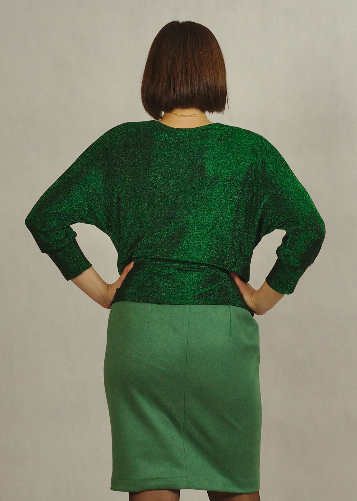 W zależności co dobierzemy na górę, ustalimy charakter spódnicy. Można dopasować do niej sweterek, bluzkę, a na to dobrać żakiet lub pasujący do niej kardigan.