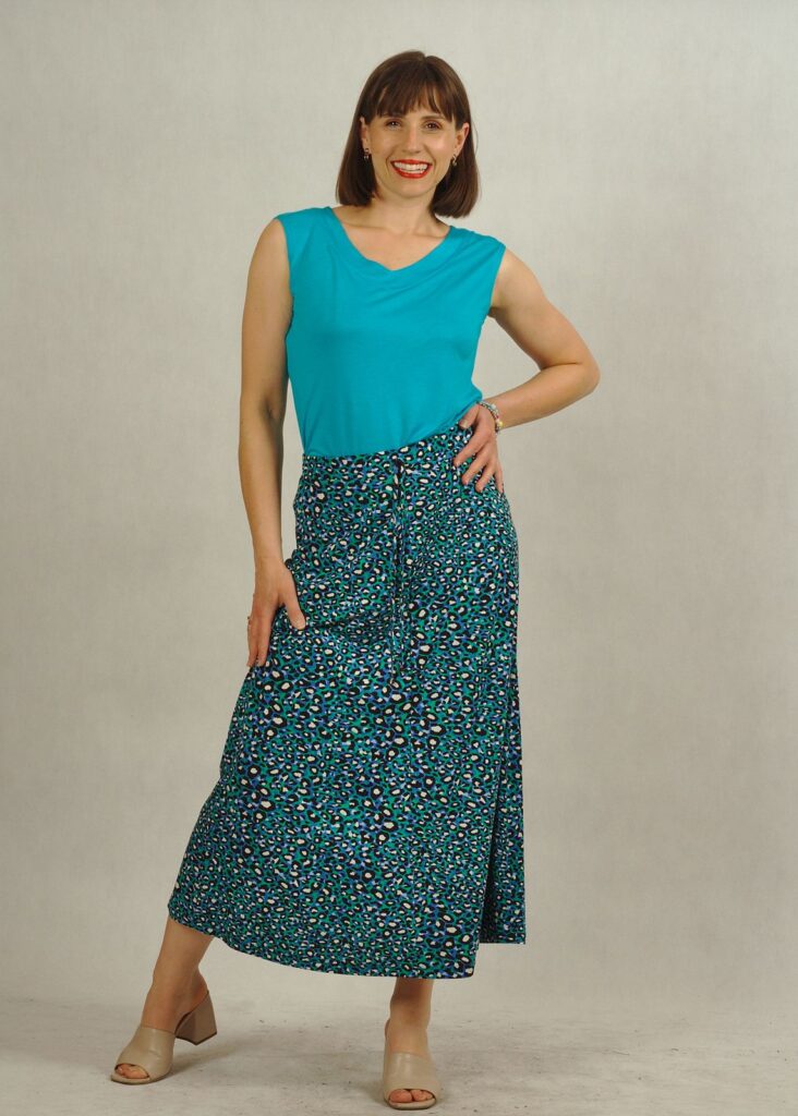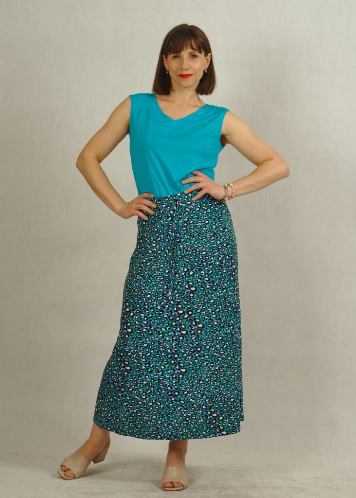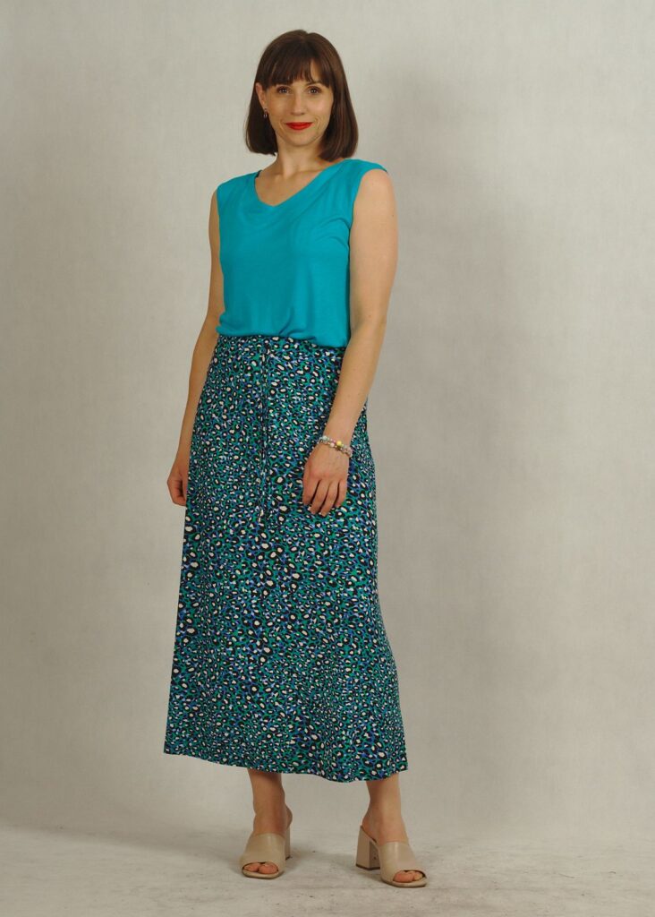 Spódnica na gumce gwarantuje idealne dopasowanie i wygodę przez cały dzień, a miękka wiskoza zapewnia lekkość i przewiewność.