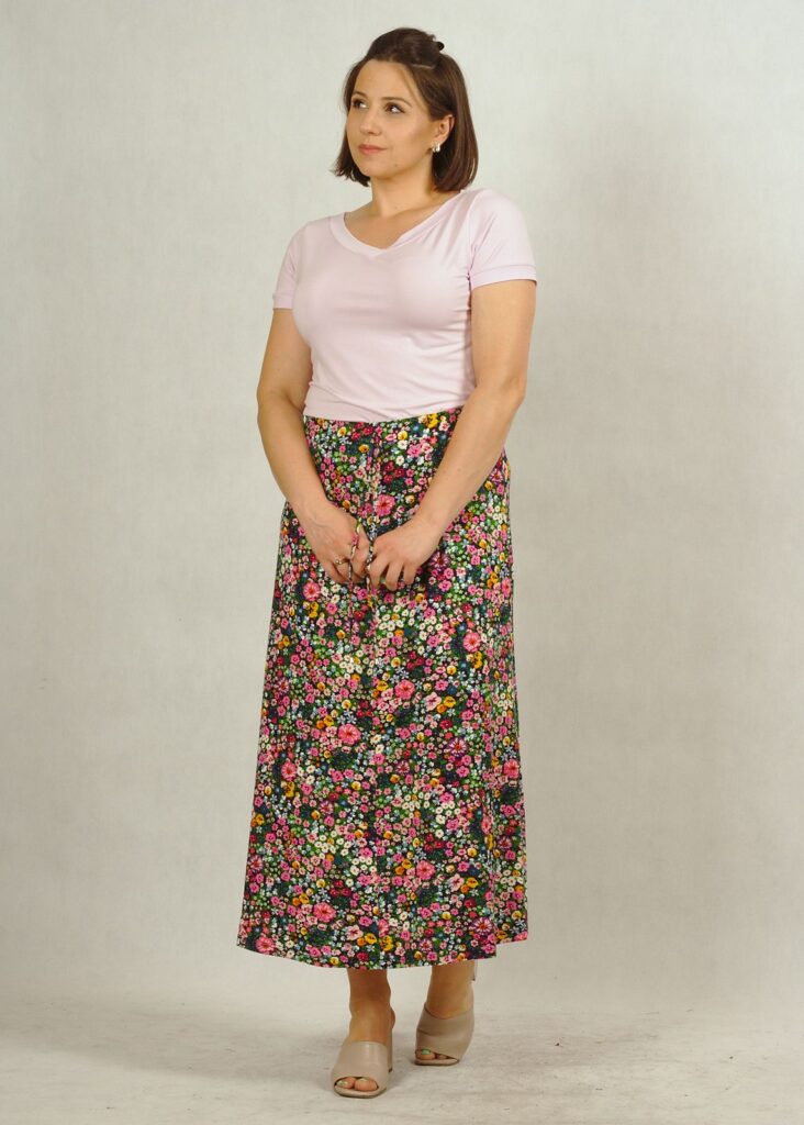 Spódnica z dzianiny wiskozowej najwyższej jakości! Wiskoza to materiał świetny w użytkowaniu, ten akurat jest rozciągliwy, gdyż zawiera domieszkę elastanu.