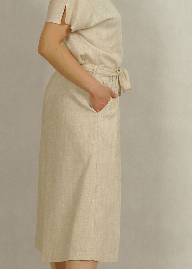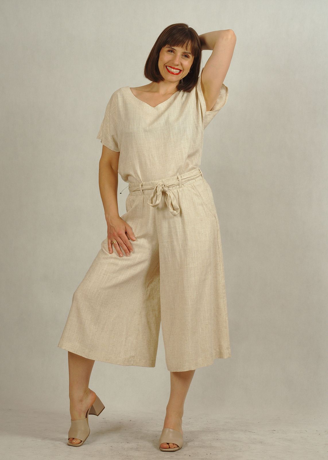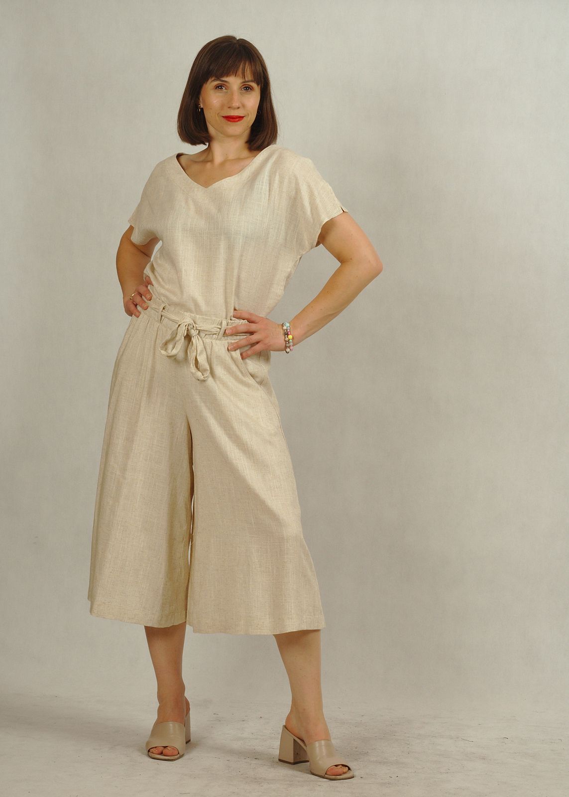 Bluzkę do kompletu znajdziesz tu:https://damana.pl/produkt/bezowy-lniany-top-z-krotkim-rekawem-844/