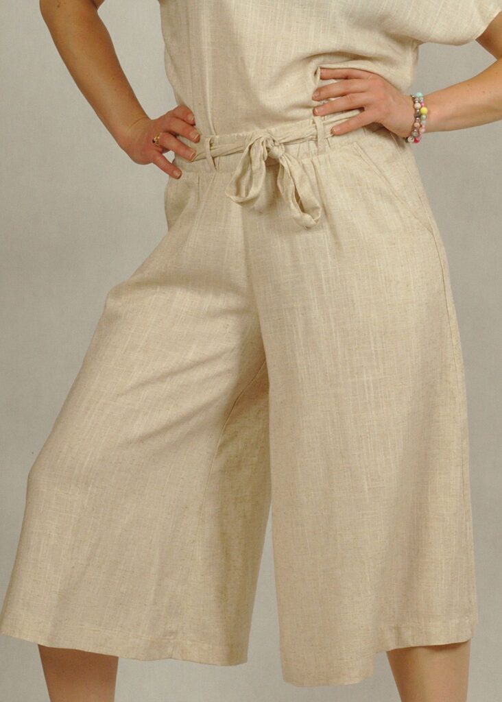 🌿 Beżowe spodnie culotte z lnem i wiskozą – styl i wygoda dla każdej sylwetki! 🌿