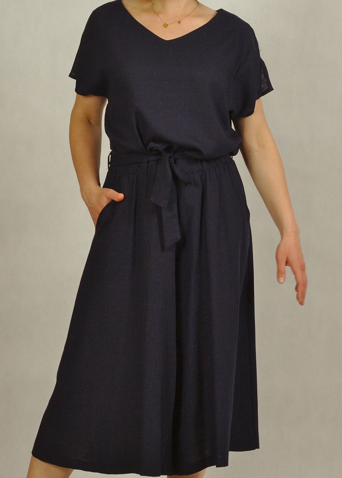 Model typu spódnico-spodnie wykonany został z przewiewnej mieszanki lnu i wiskozy, co gwarantuje doskonałą cyrkulację powietrza w cieplejsze dni.
