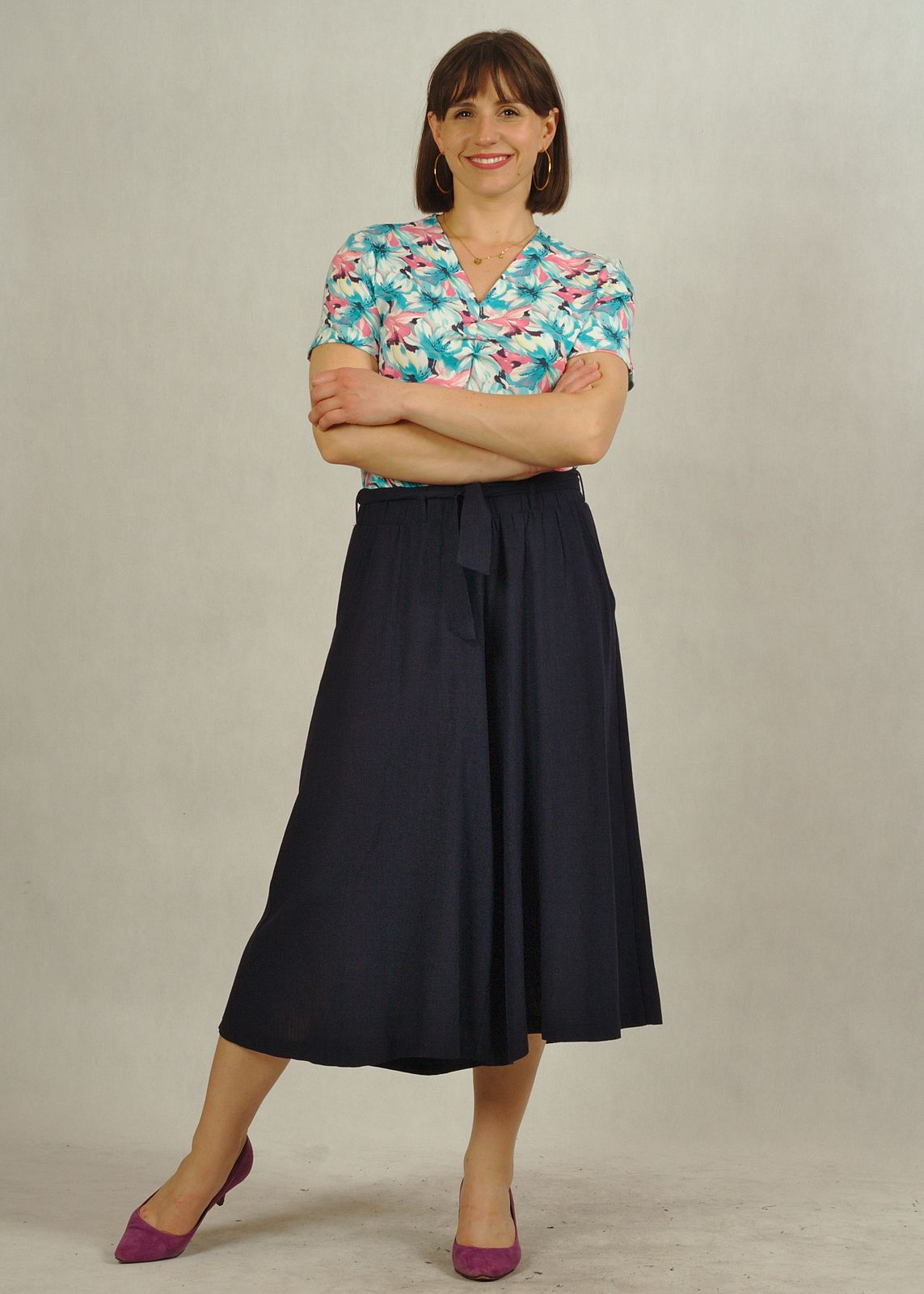 🌿 Stylowe i wygodne spodnie culotte w klasycznym granatowym kolorze to idealna propozycja dla kobiet ceniących komfort i elegancję.