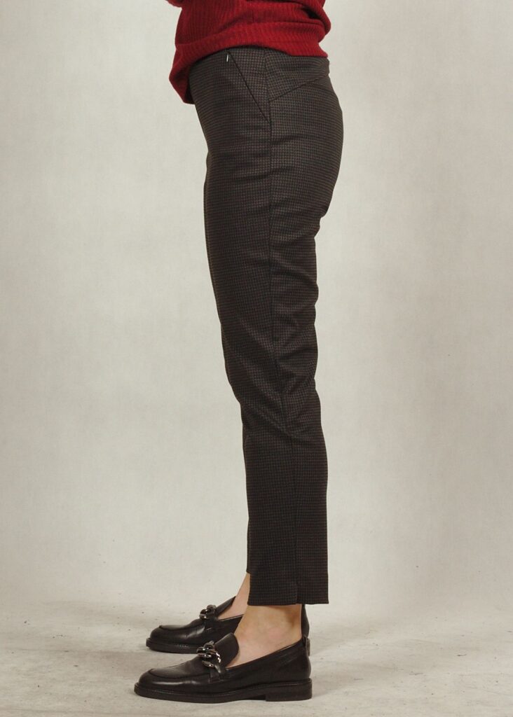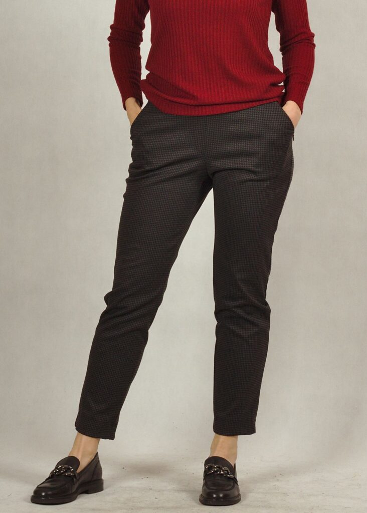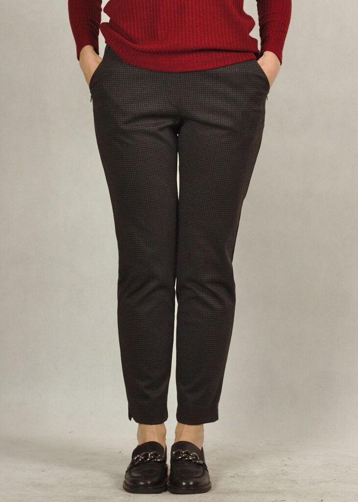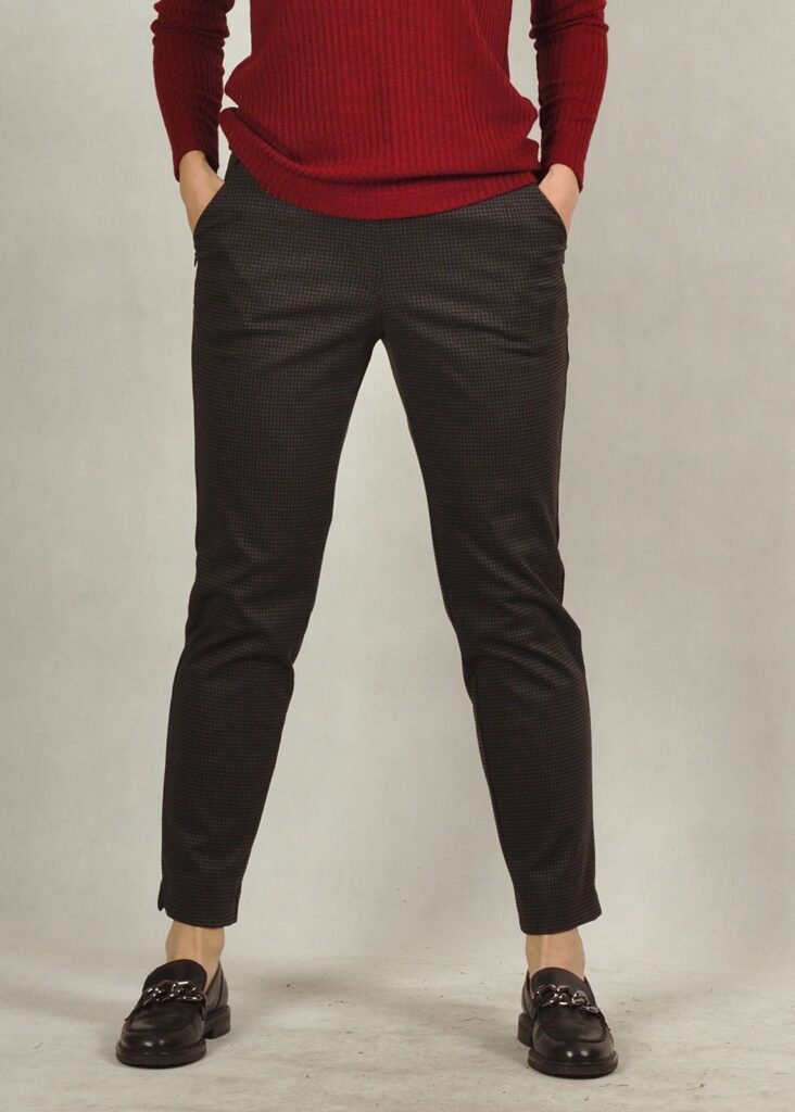 Na spodniach znajduje się delikatny wzór kratki.