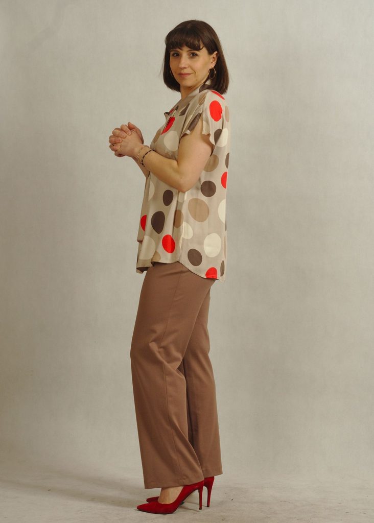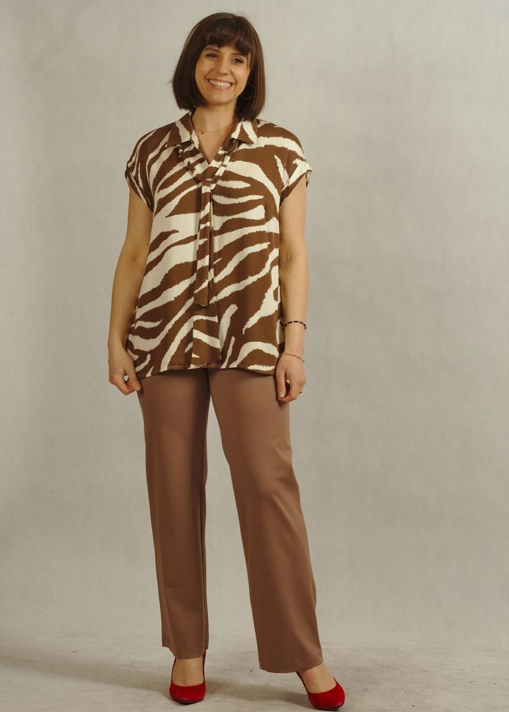 Szerokie spodnie o kolorze cappuccino zapewniają pełną swobodę ruchów, a elastyczna talia na gumce gwarantuje idealne dopasowanie do sylwetki.