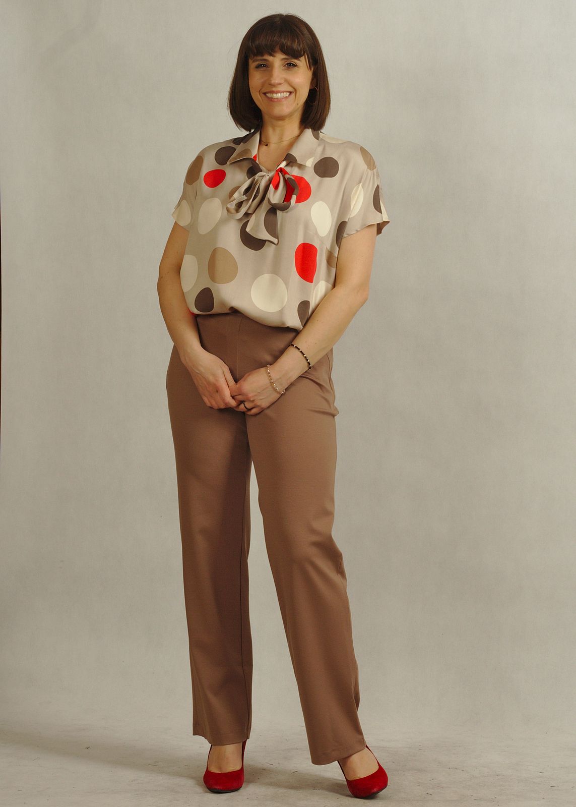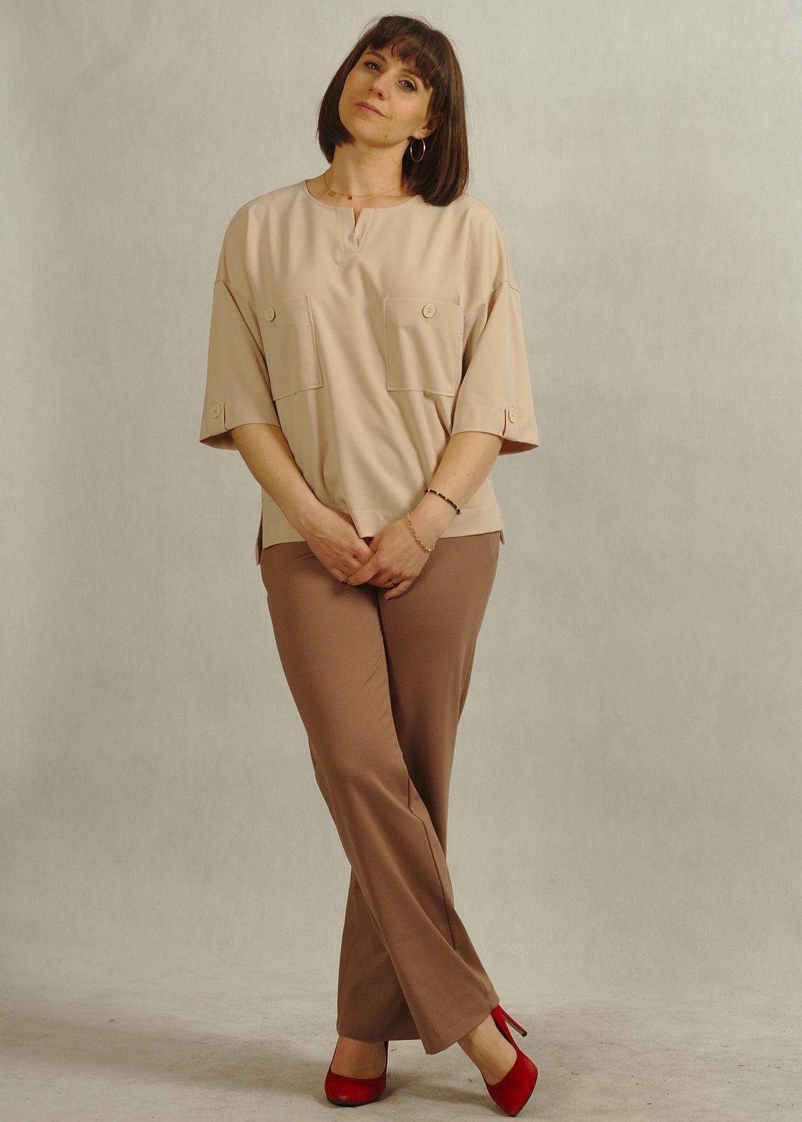 Spodnie z szeroką nogawką w kolorze cappuccino – wygodne, dzianinowe spodnie na gumce z kieszeniami.