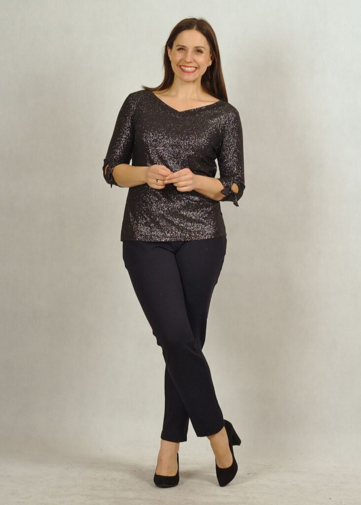 Bluzka może być również doskonałym uzupełnieniem stylizacji świątecznej – ponieważ może być łączona z wieloma kolorami i fasonami.