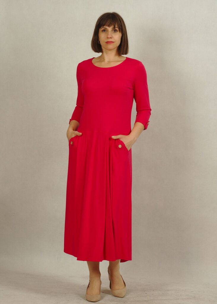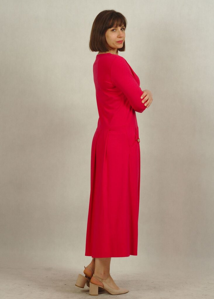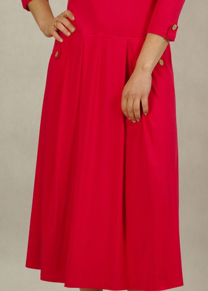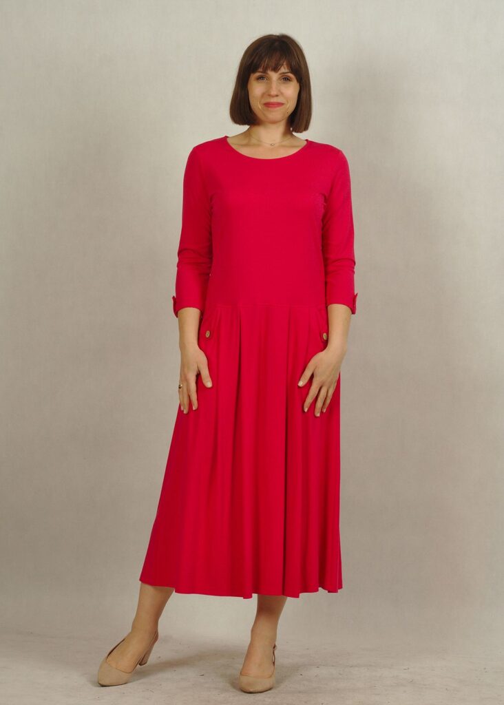 Postaw na elegancję i wygodę, wybierając naszą amarantową sukienkę midi, która świetnie podkreśli Twoją sylwetkę i doda stylizacjom wyrazistości.