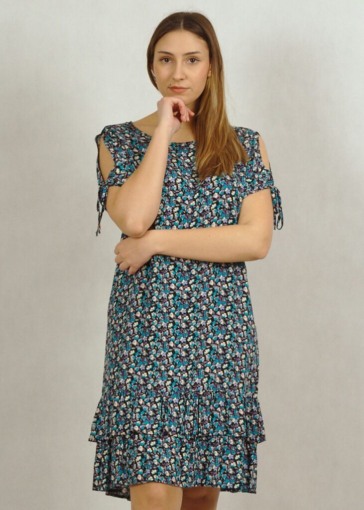 Piękna, letnia sukienka wykonana z wiskozy 100%. Zapewni Ci komfort w upalne dni, materiał “oddycha” i jest przyjemny dla skóry.