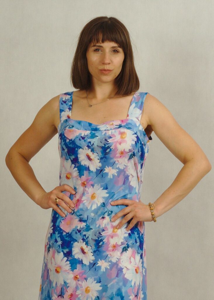 Długość całkowita sukienki dla rozmiaru M – 104cm; dla rozmiaru 4XL – 110cm.