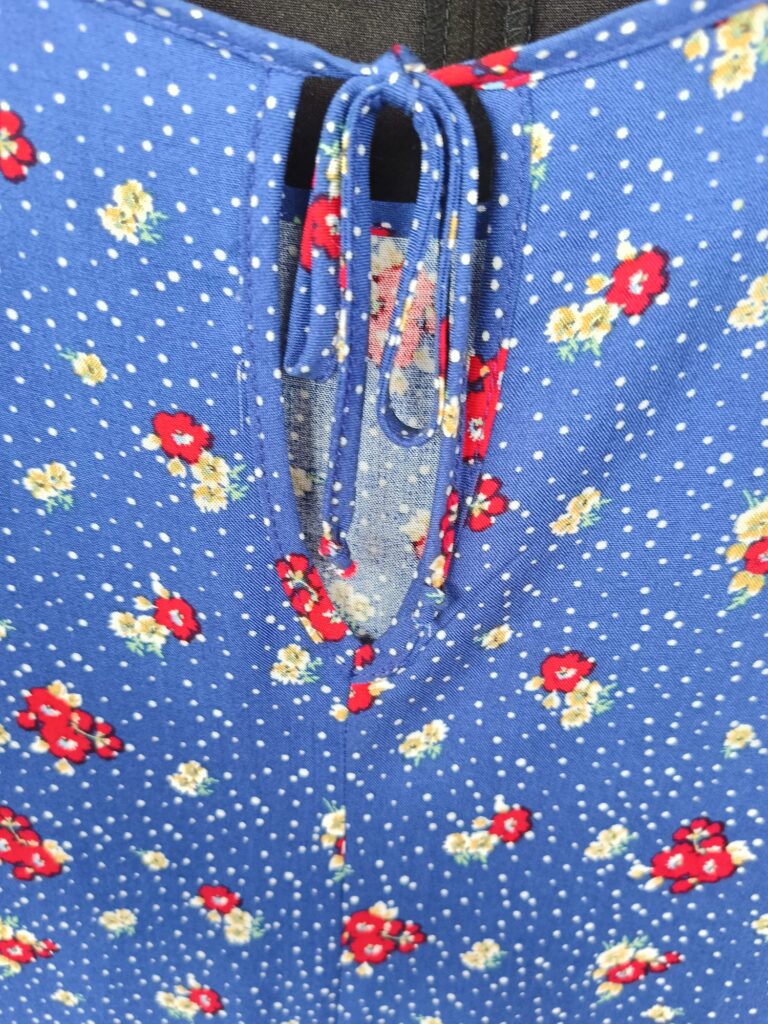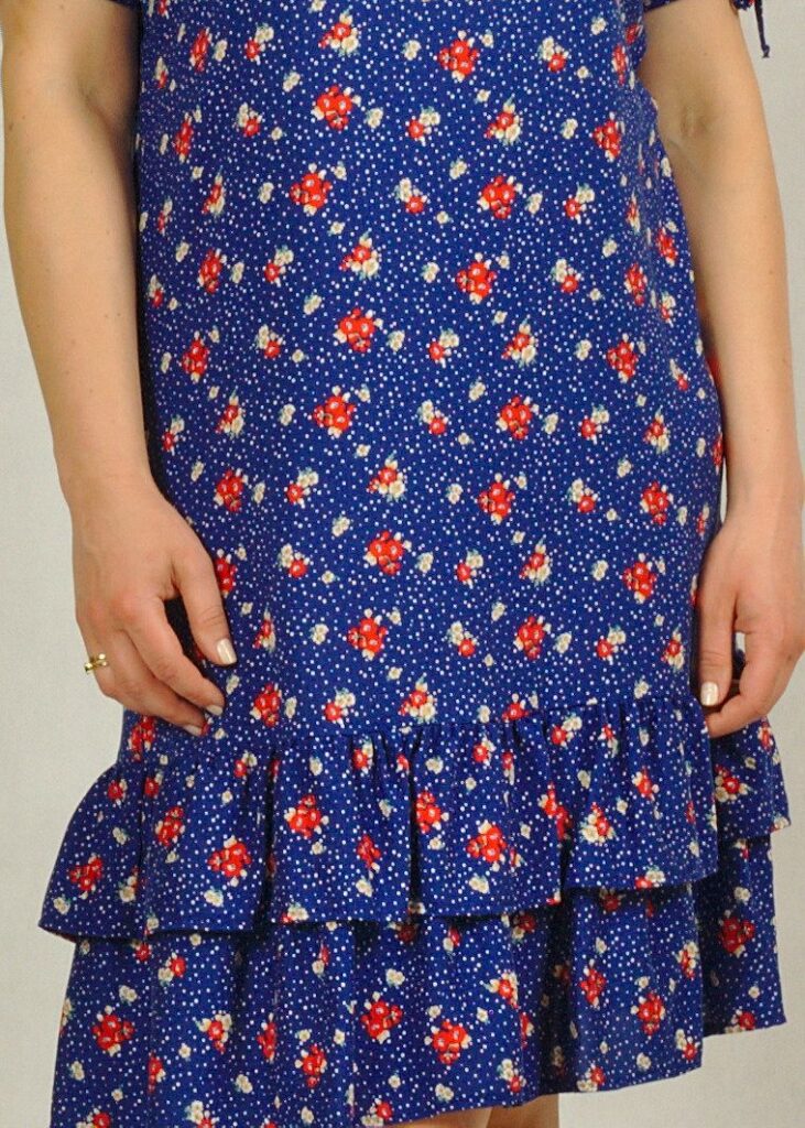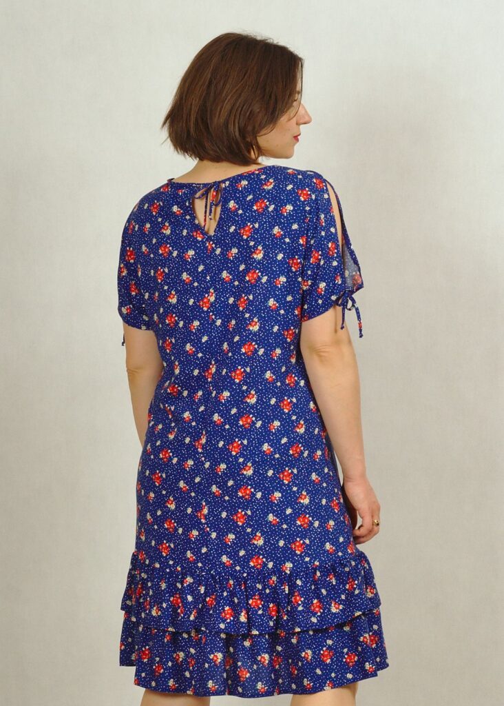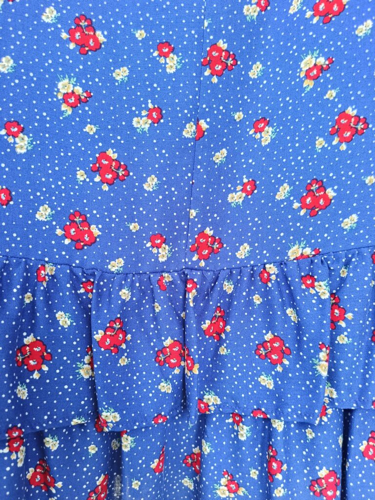 Sukienka chabrowa w czerwone kwiatki* przyciągnie Twoją uwagę.