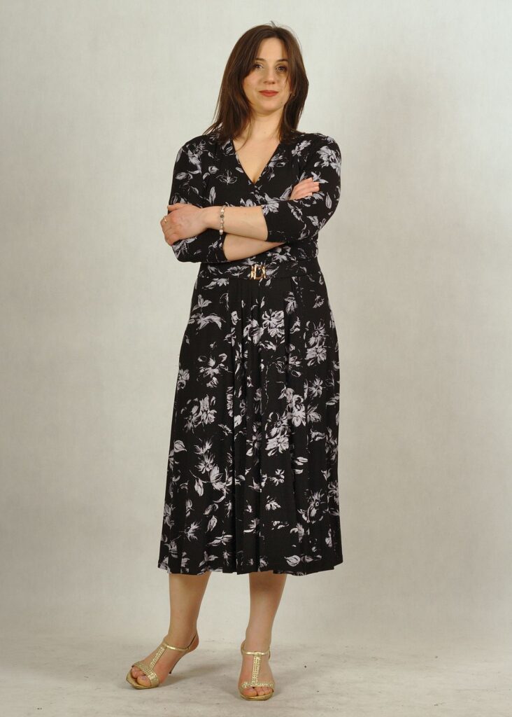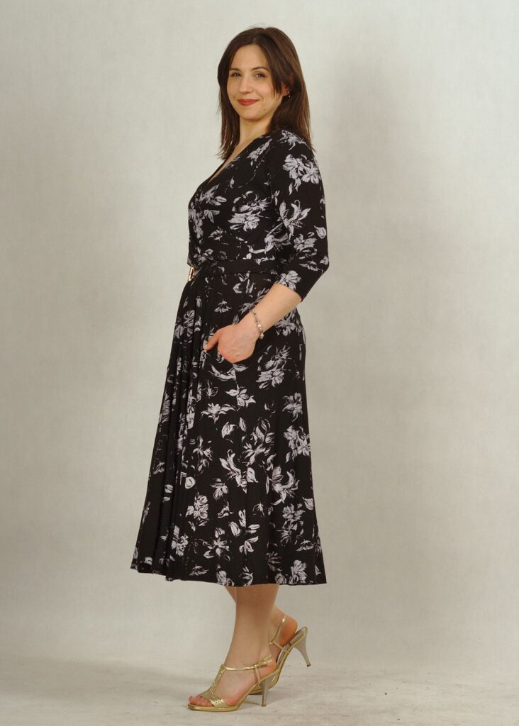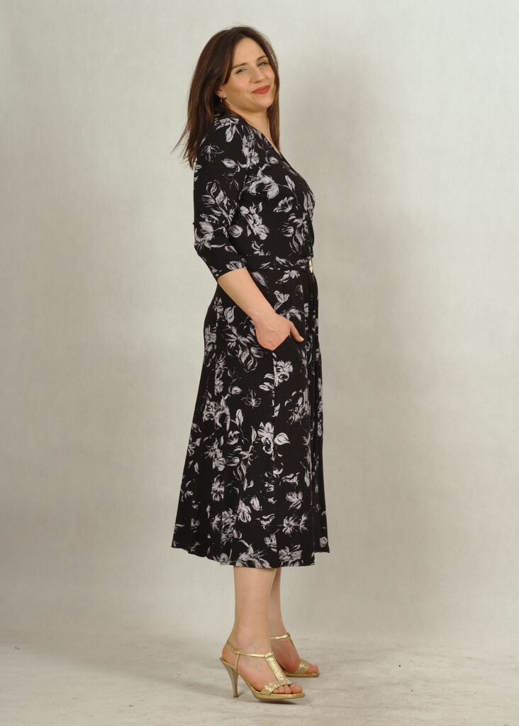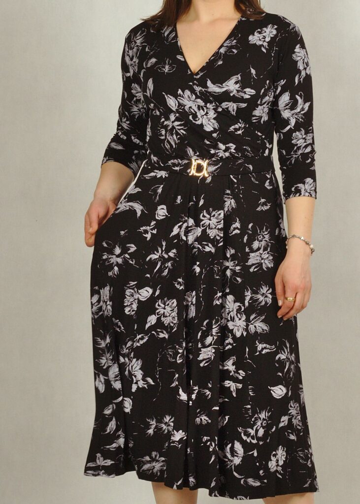 Wyjątkowa sukienka z kopertowym dekoltem to piękna propozycja dla Damy, która ceni sobie styl i klasę.