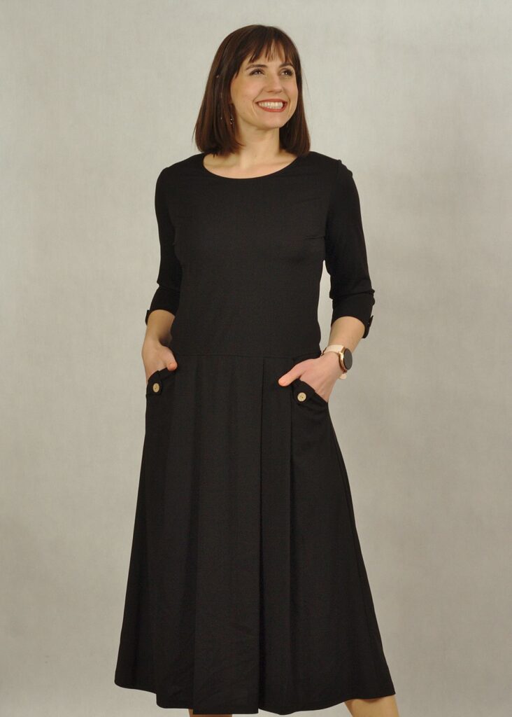 Dzięki praktycznym kieszeniom sukienka czarna zyskuje na funkcjonalności, łącząc styl z wygodą.