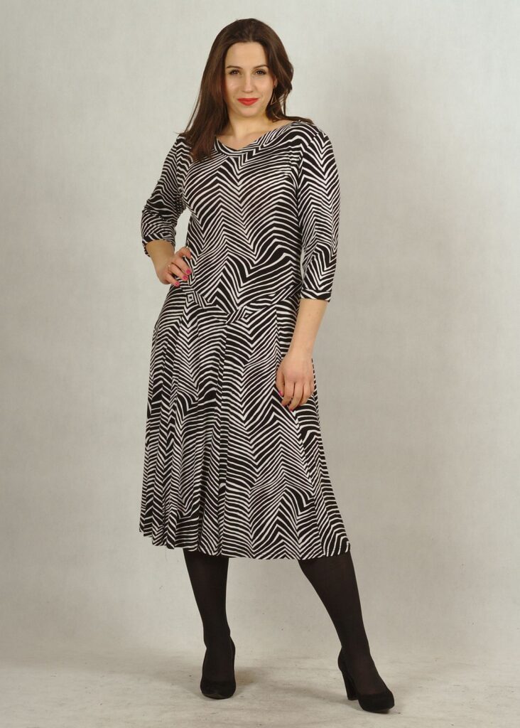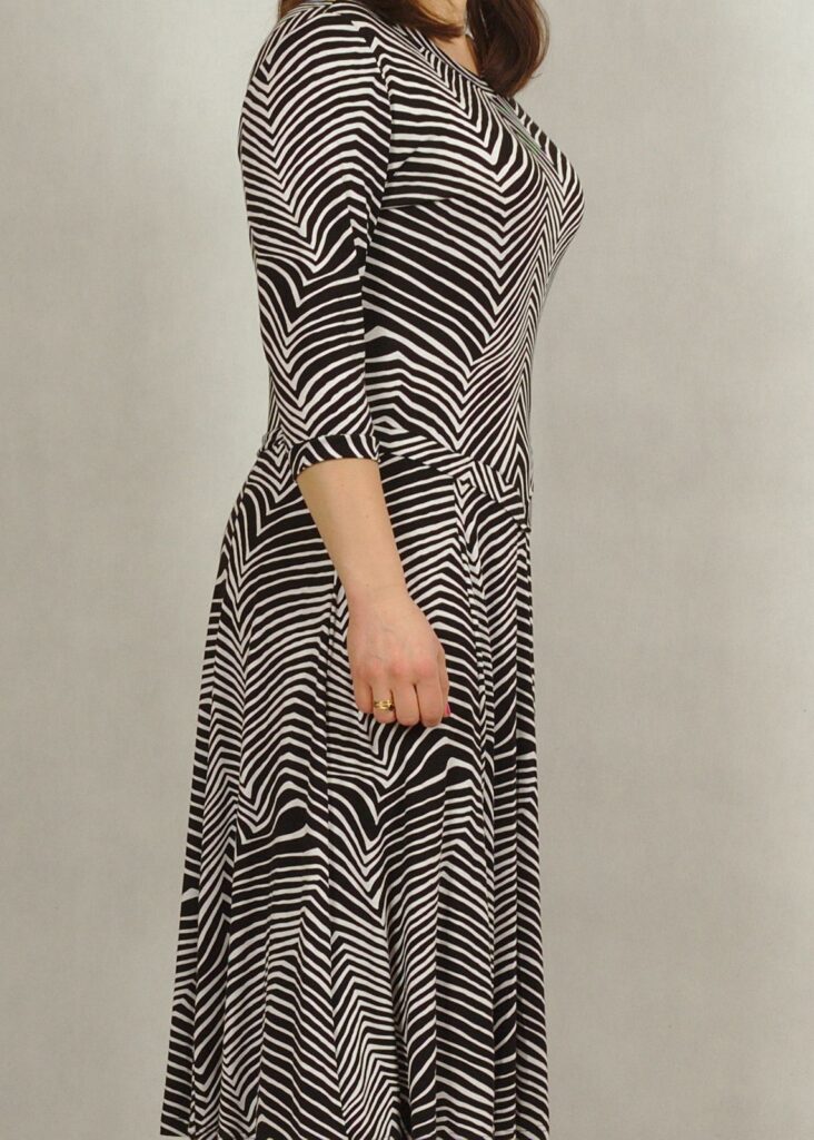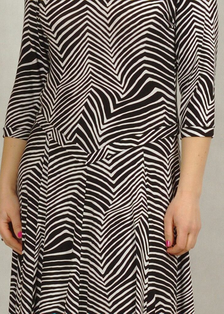 Czarno – beżowa sukienka w geometryczne wzory to elegancja i styl sam w sobie.