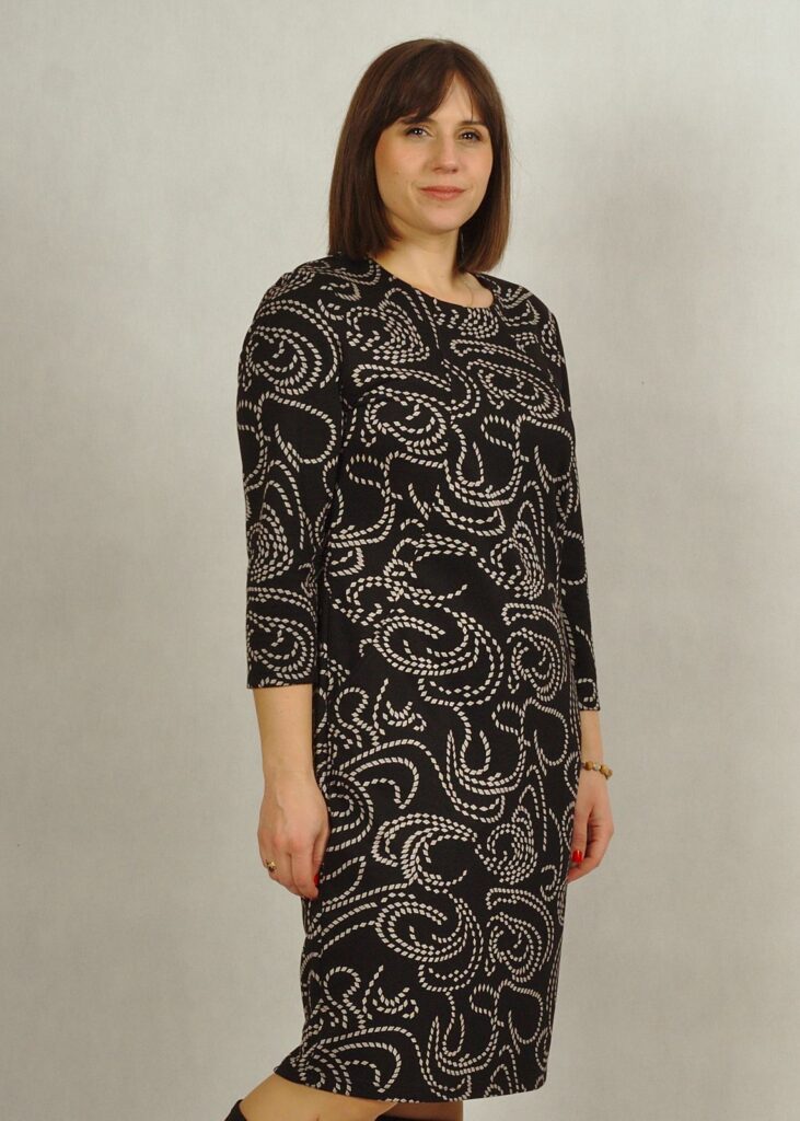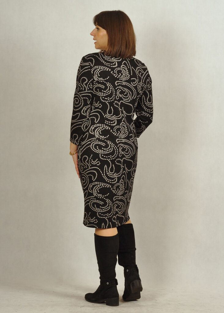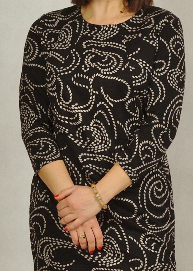 Sukienka we wzory – delikatne białe wzory na czerni.
