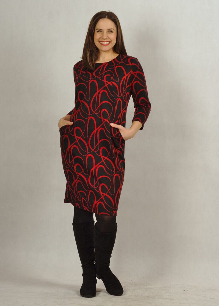 Wyjątkowa sukienka z dzianiny, która może być idealną opcją na co dzień lub na spotkanie rodzinne.