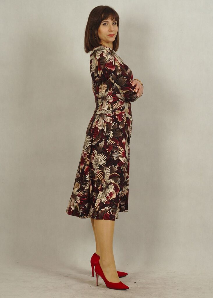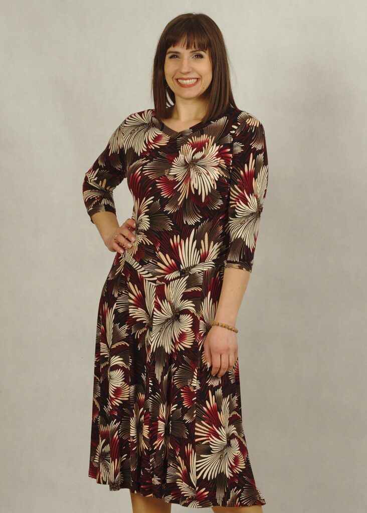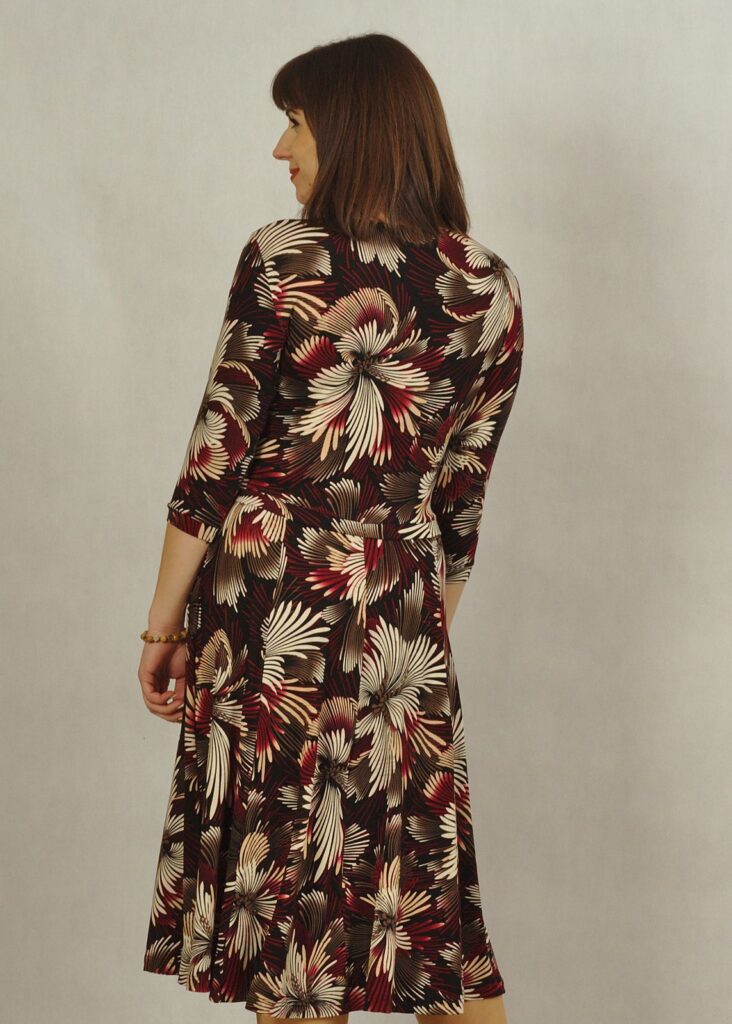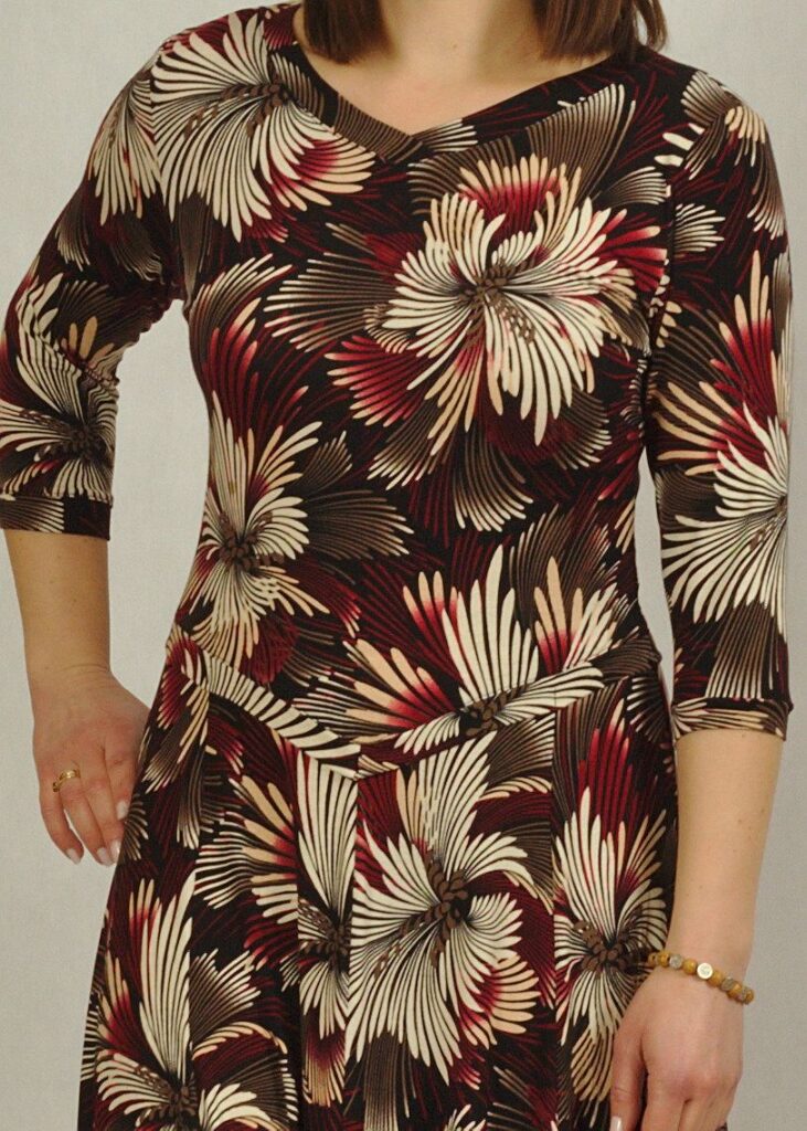Sukienka czarna – wzór w bordowuy piękny kwiat – to kolejna propozycja naszej ukochanej sukienki.