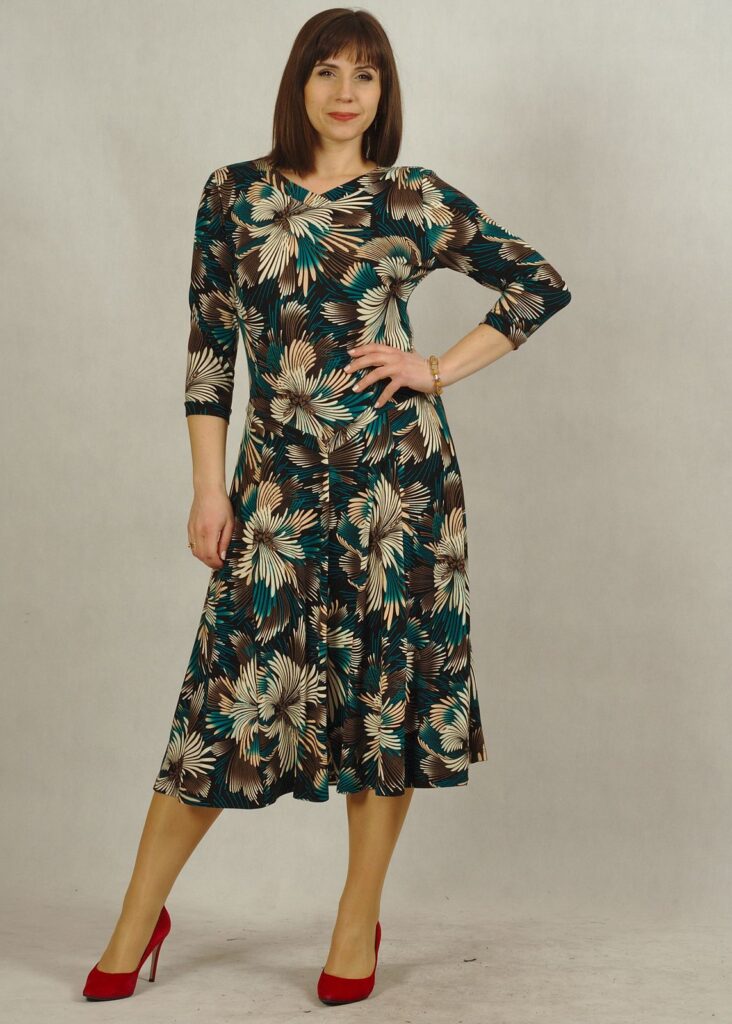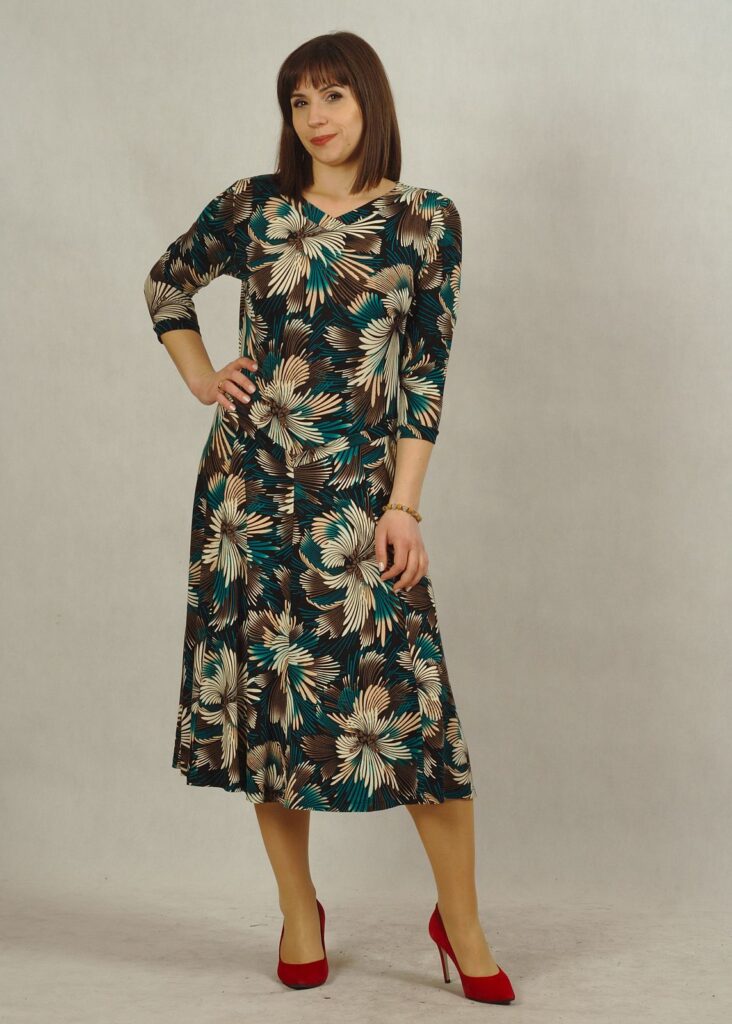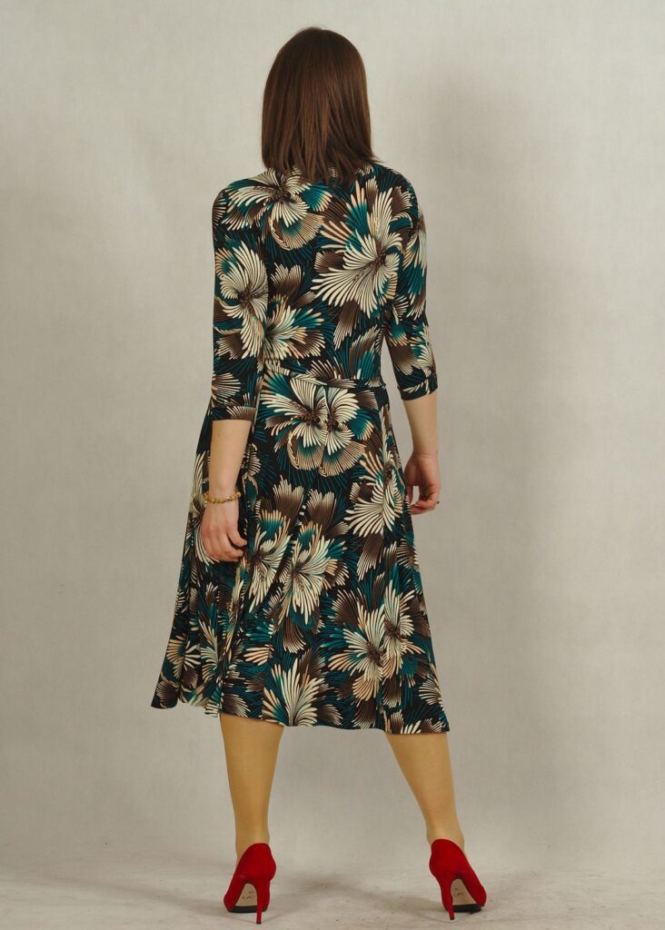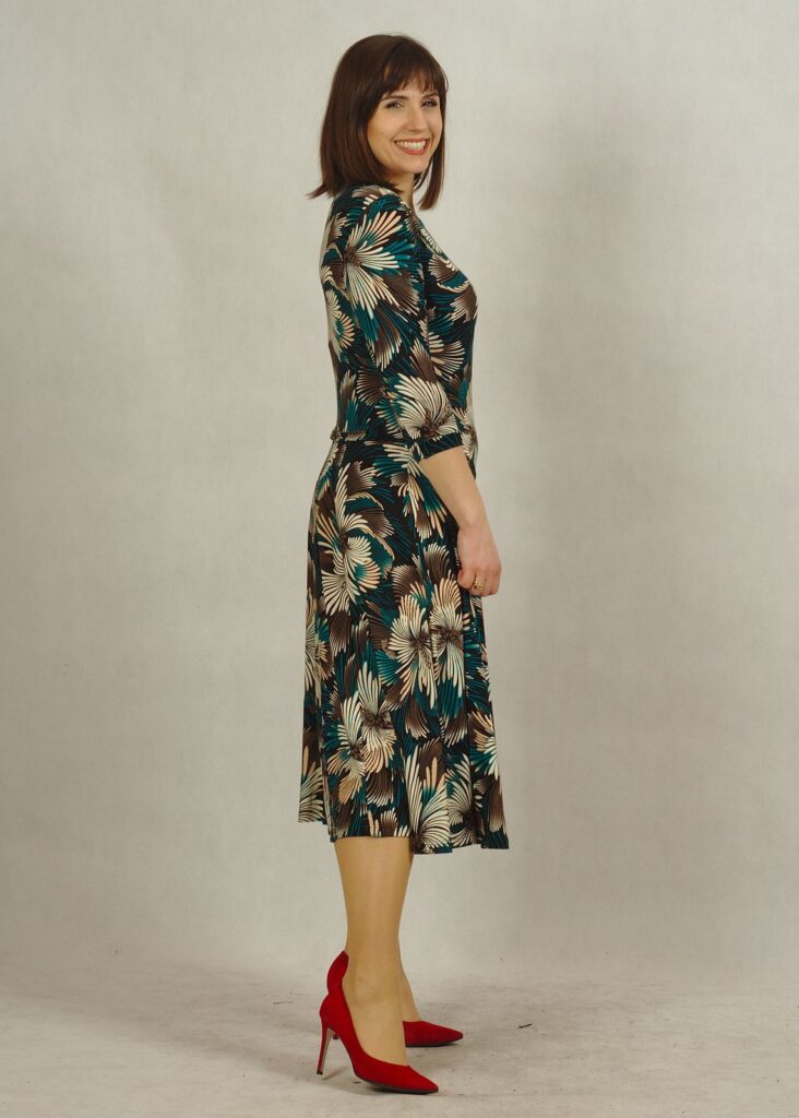 Sukienka z rękawem 3/4 i dekolt w serek, który pięknie zdobi Twoje obojczyki.