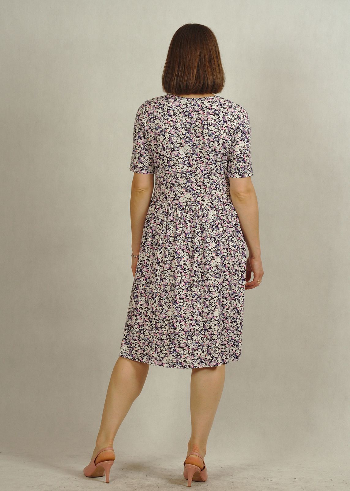 Rękaw do łokcia oraz długość do kolan sprawiają, że sukienka świetnie sprawdzi się zarówno na co dzień, jak i na letnie spotkania.