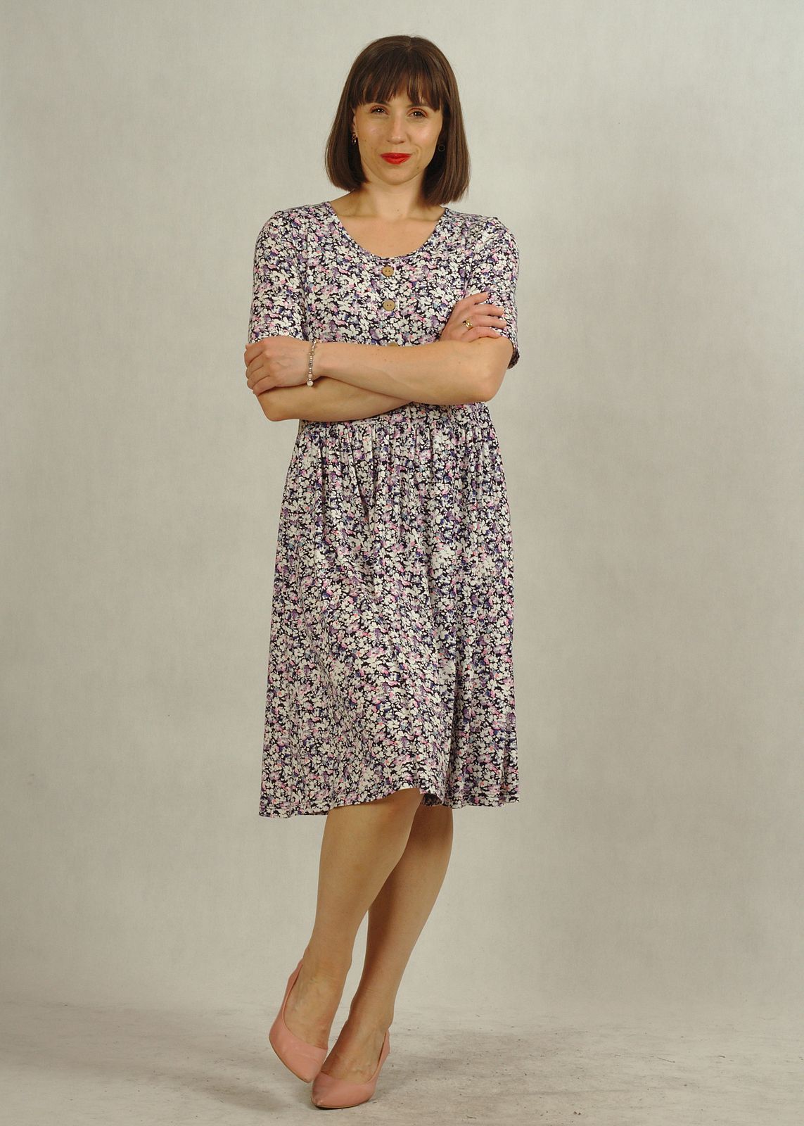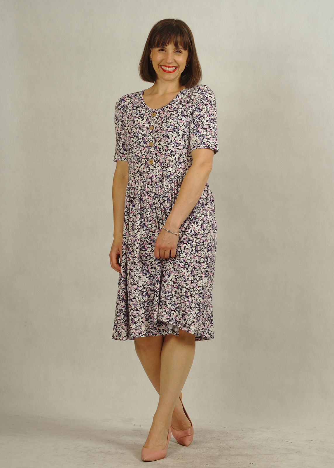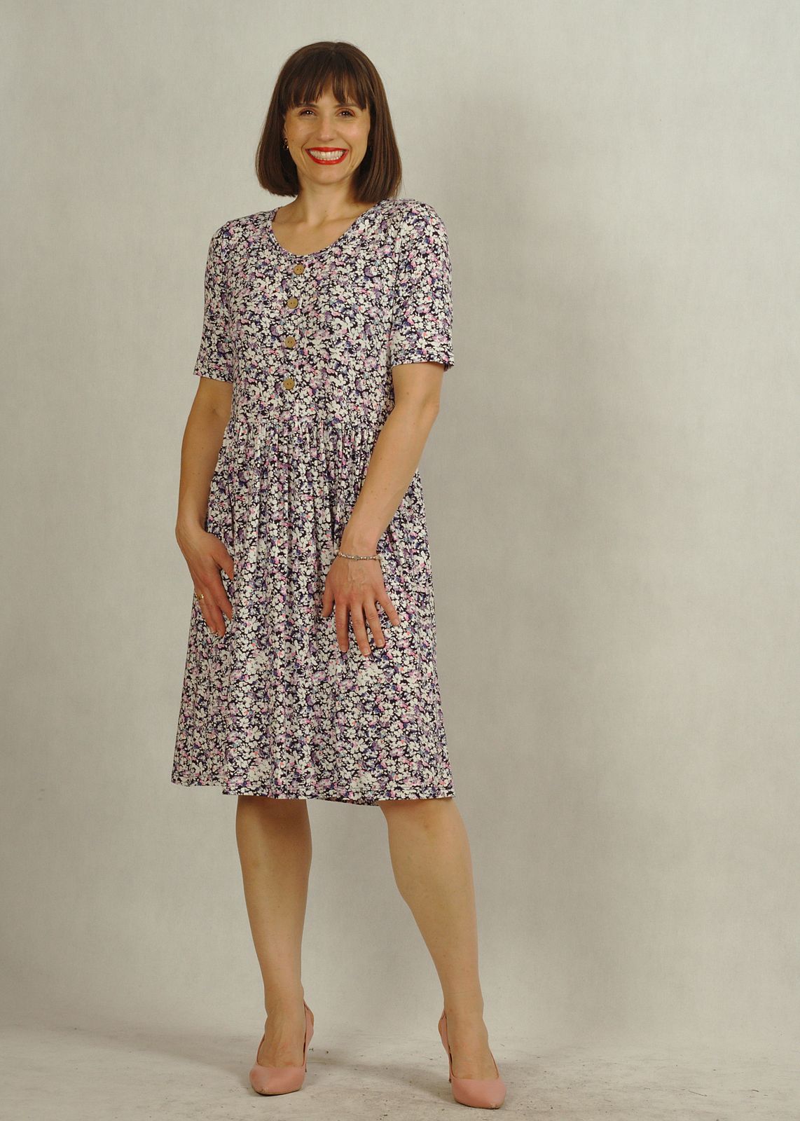Letnia sukienka z wiskozy w drobny, kolorowy wzór to klasyka, która nigdy nie wychodzi z mody.