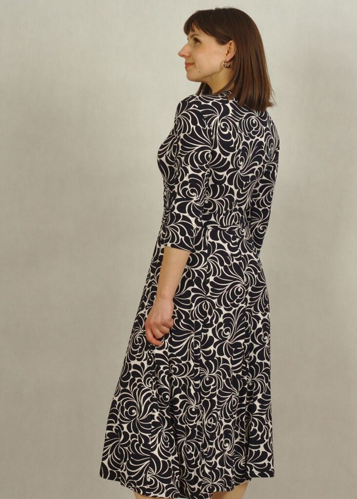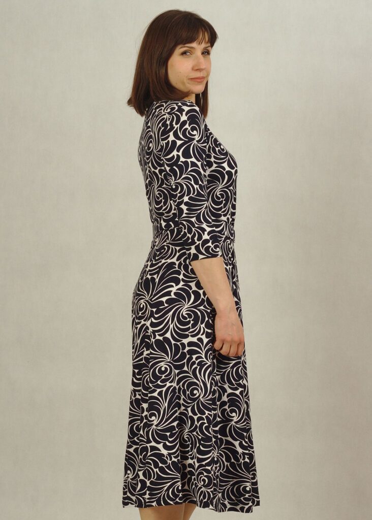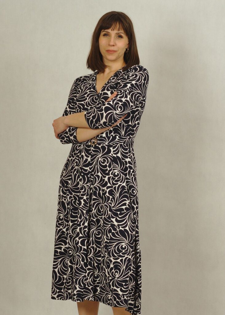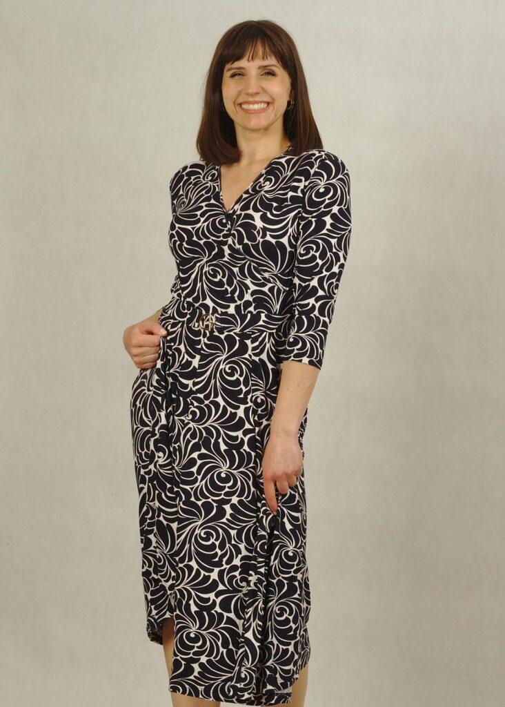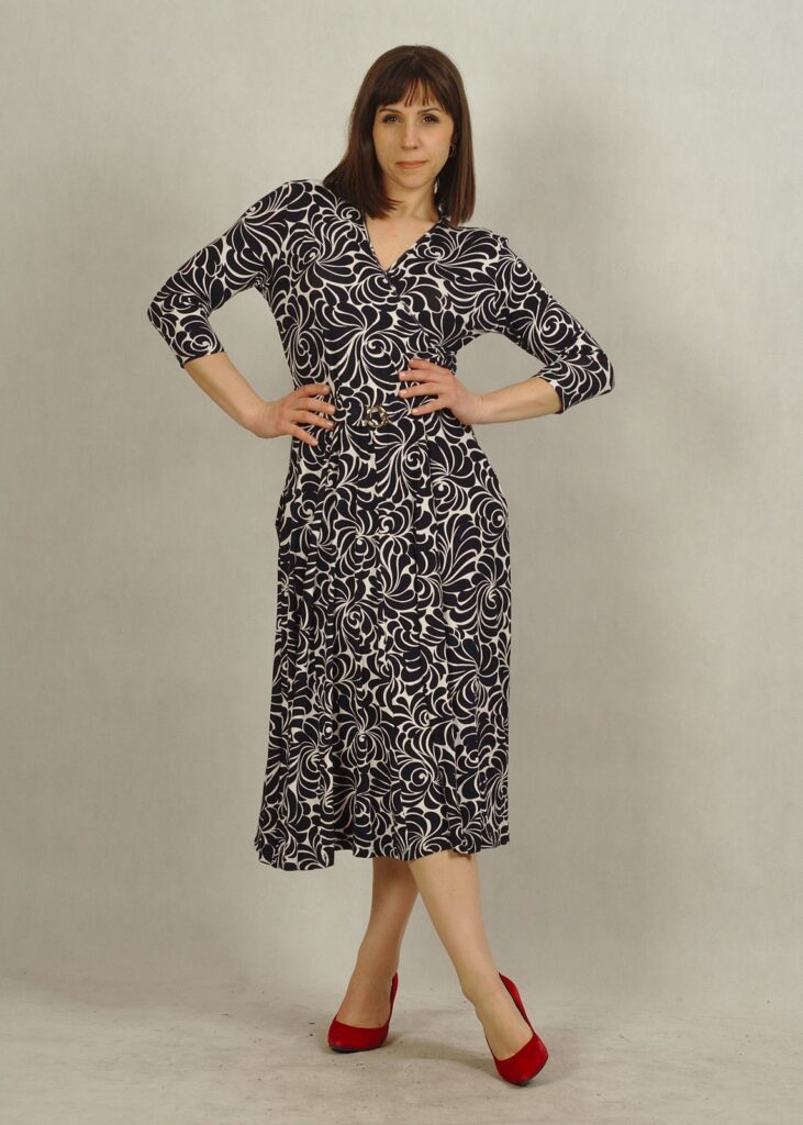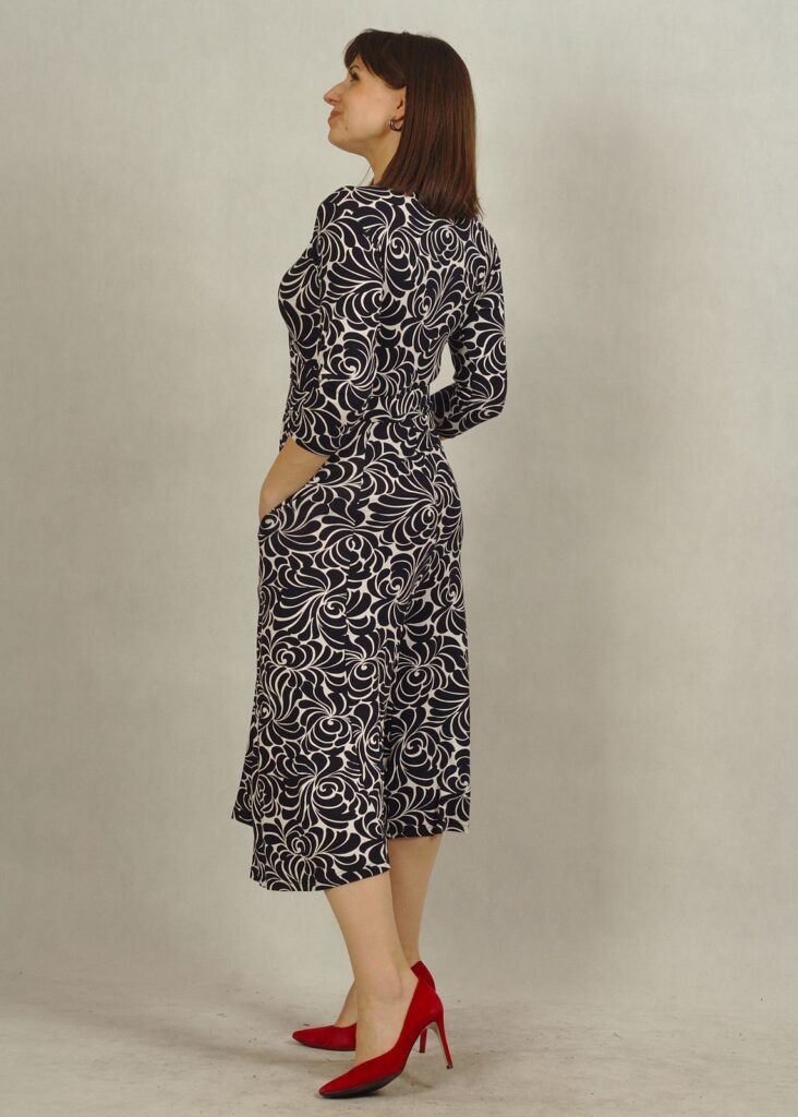Sukienka z rękawem 3/4 sprawdzi się doskonale przez cały rok – zarówno w eleganckich stylizacjach na specjalne okazje, jak i w bardziej codziennych zestawieniach.