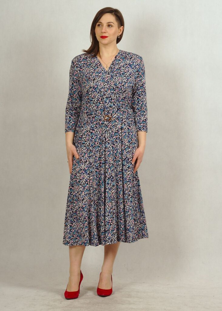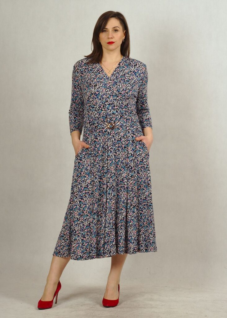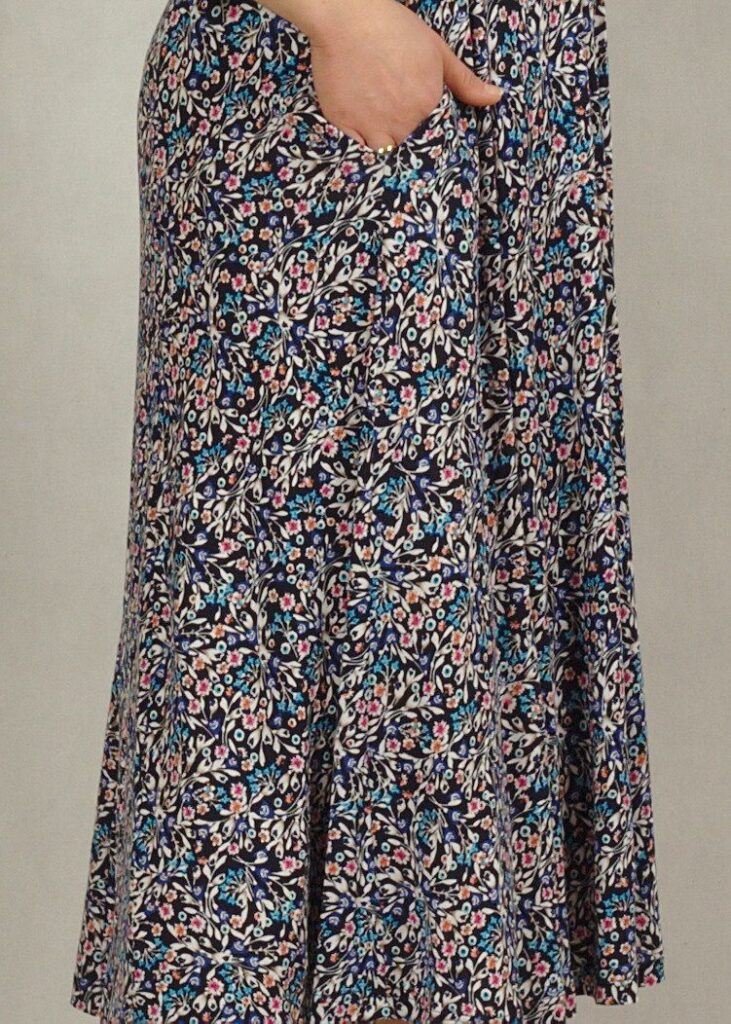 Ta sukienka midi zachwyca nie tylko swoją długością, ale także praktycznymi detalami – została wyposażona w funkcjonalne kieszenie.