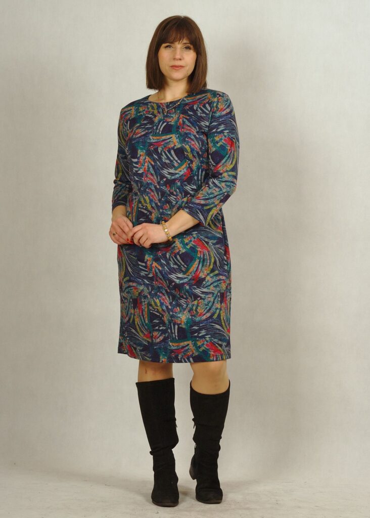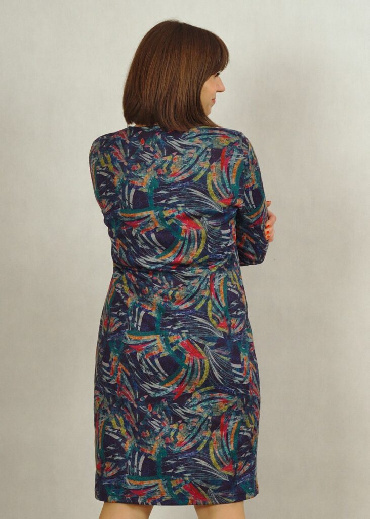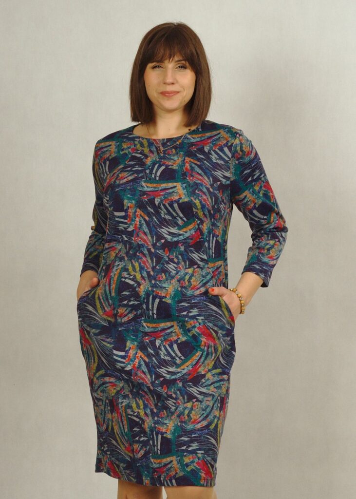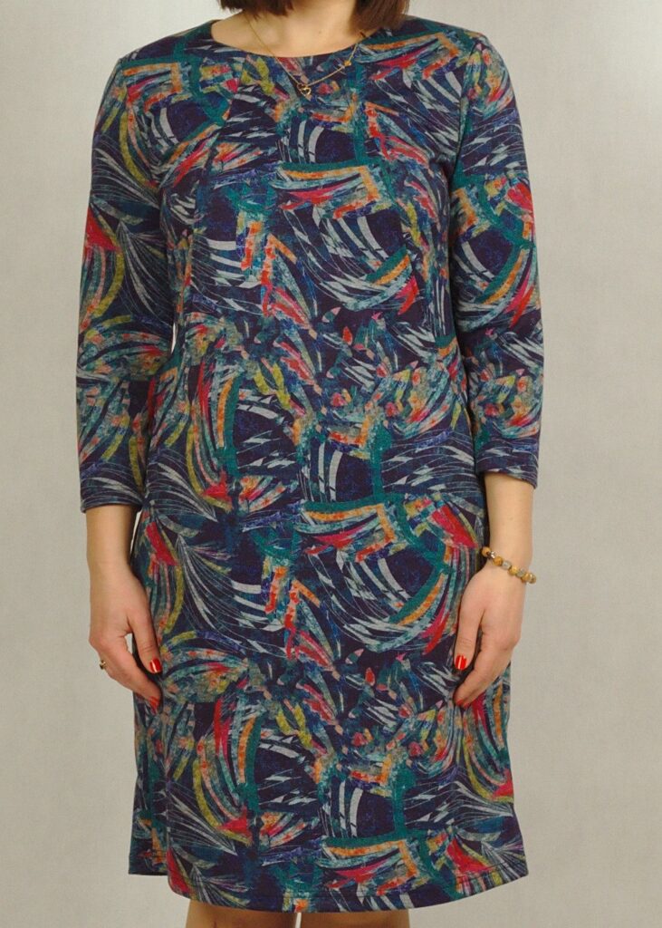Sukienka granatowa we wzory z kieszeniami plus size /674/