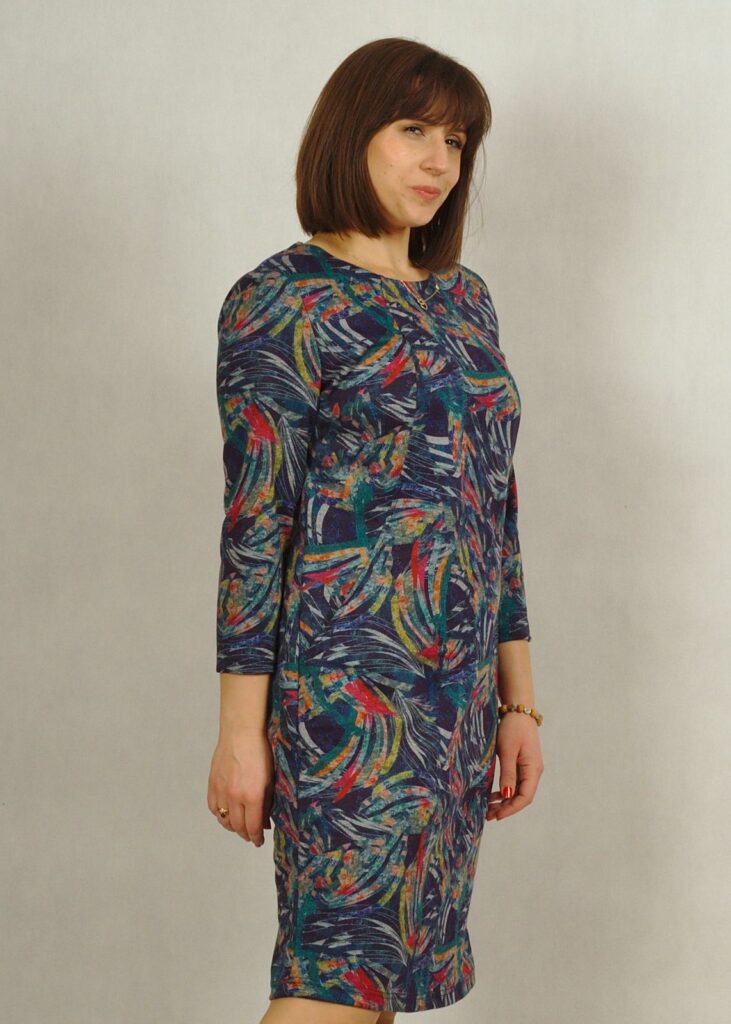 Sukienka o prostym fasonie, który super wygląda na wielu typach sylwetek.