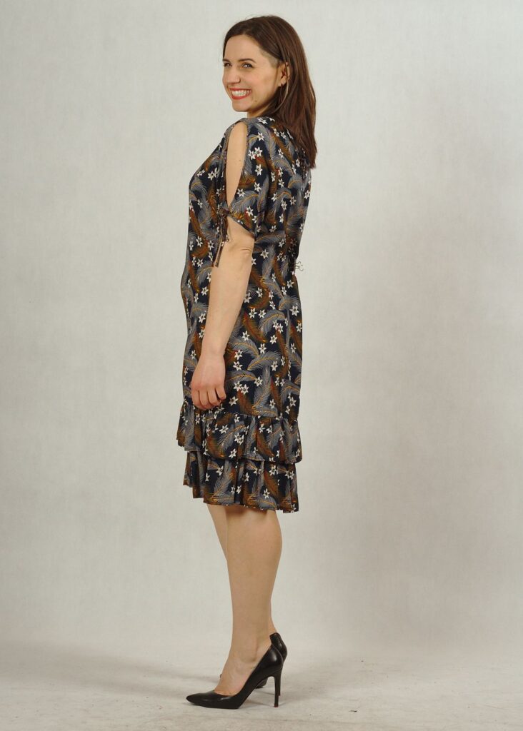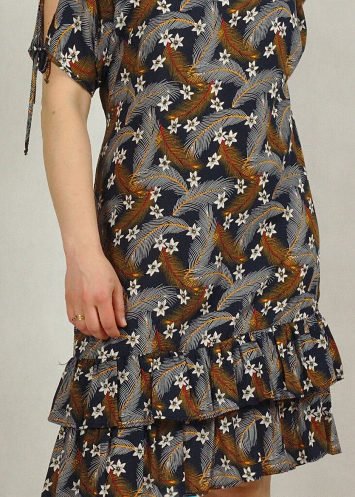 Piękna, letnia sukienka wykonana z wiskozy 100%. Zapewni Ci komfort w upalne dni, materiał “oddycha” i jest przyjemny dla skóry.