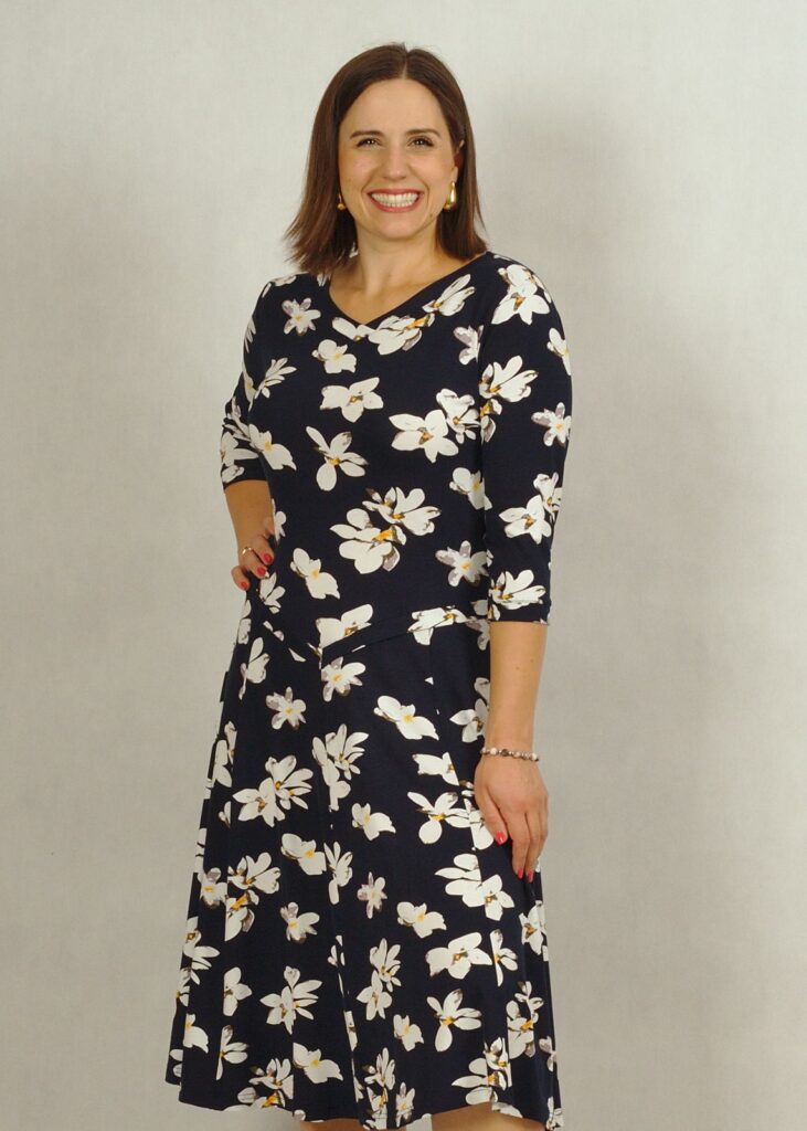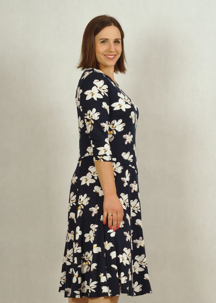 Sukienka z rękawem 3/4 jest praktyczna na każdą porę roku.
