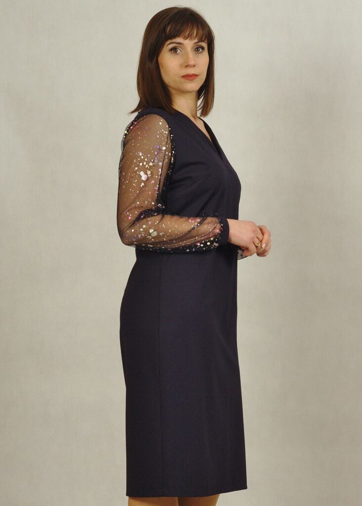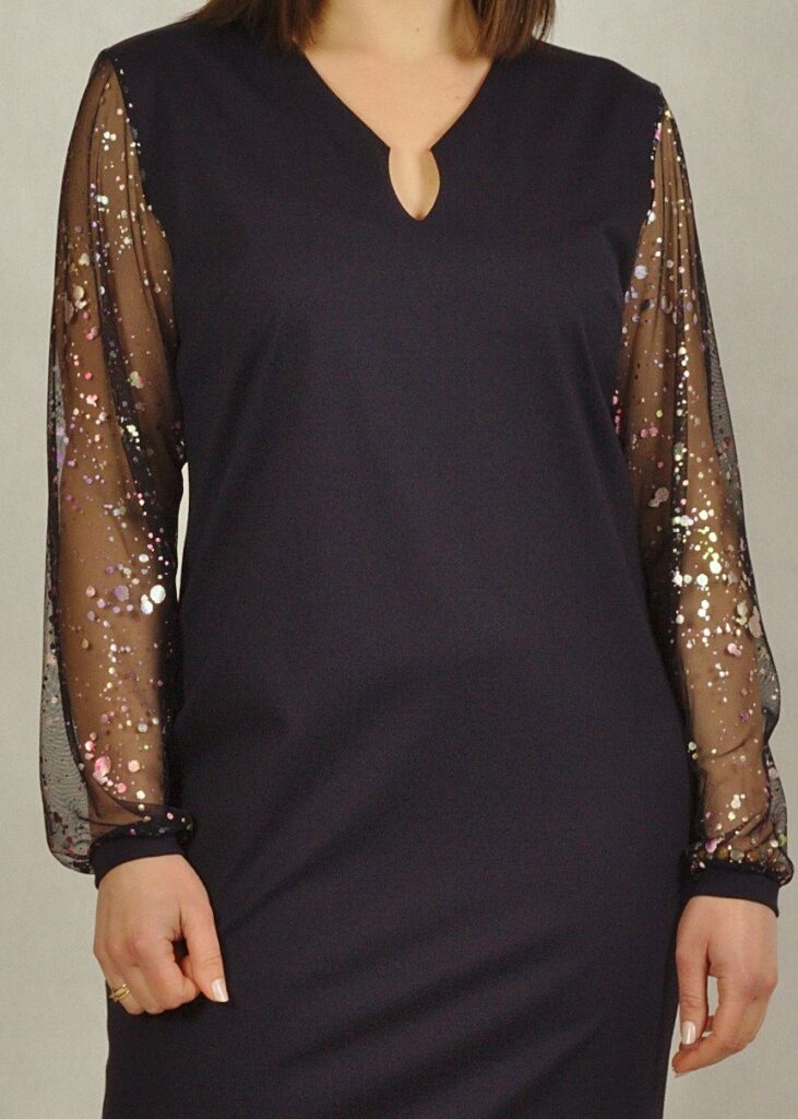 Granatowa sukienka błyszcząca poleca się na imprezę w karnawale i nie tylko!