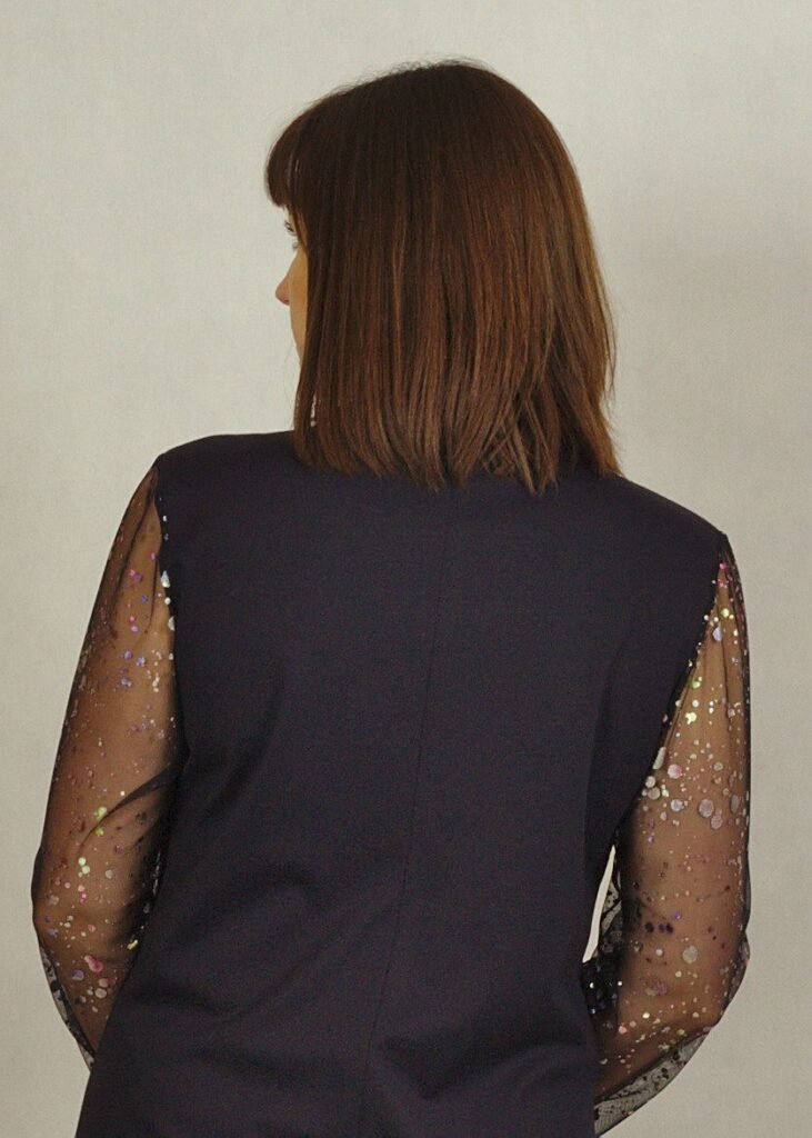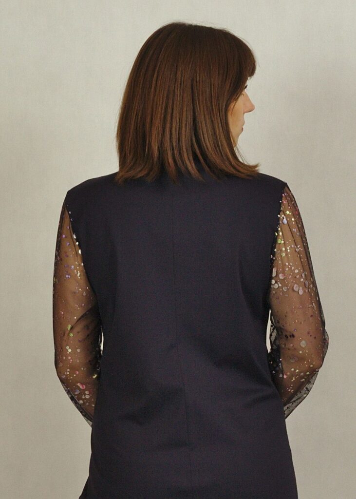 Sukienka z ozdobnym rękawem – ślicznie mieni się w świetle.