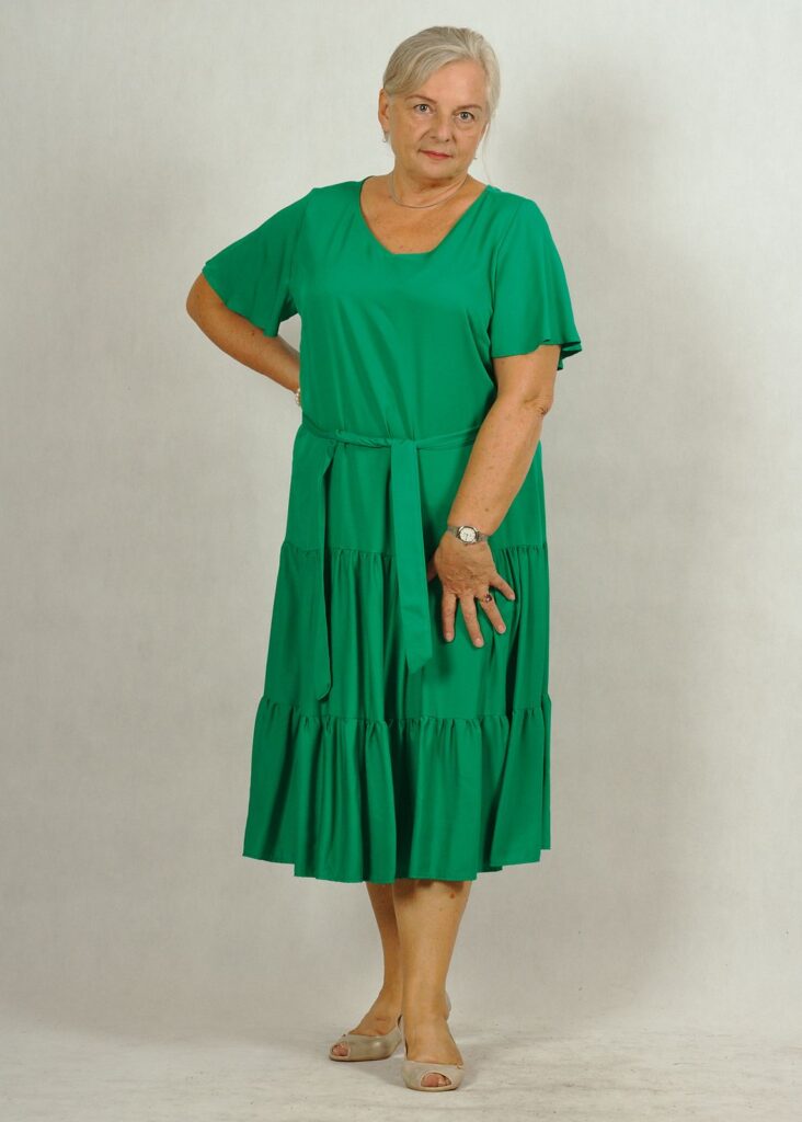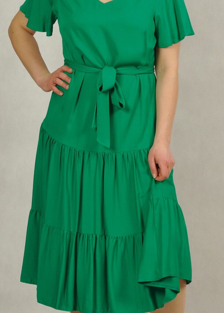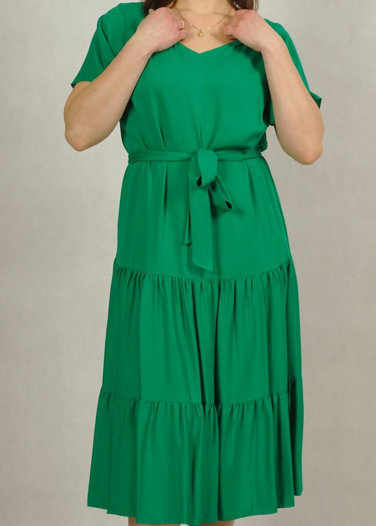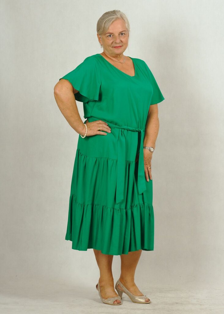 Sukienka jednokolorowa zielona z falbanami plus size /704/