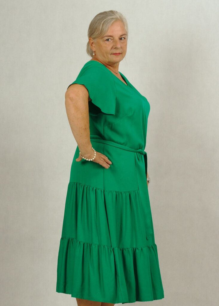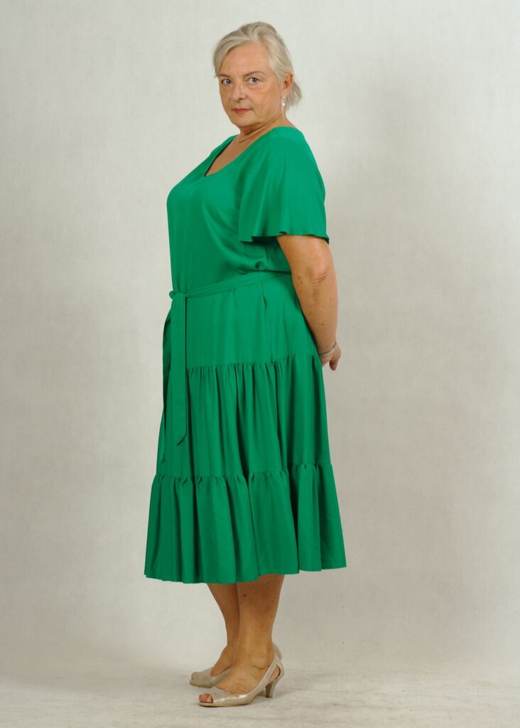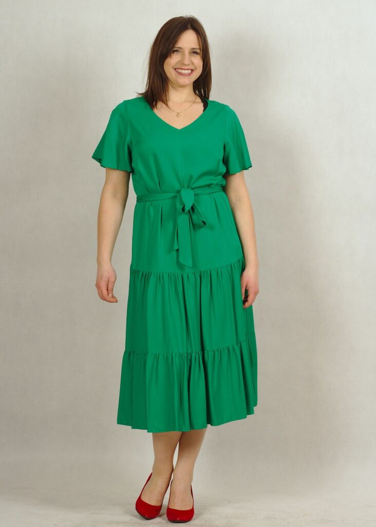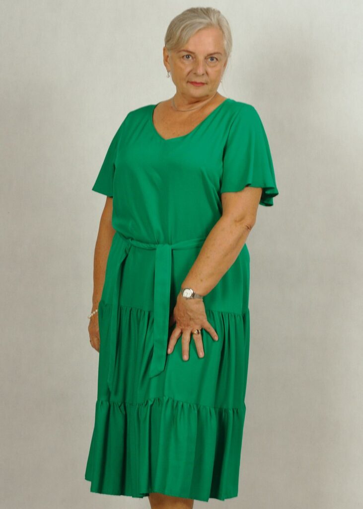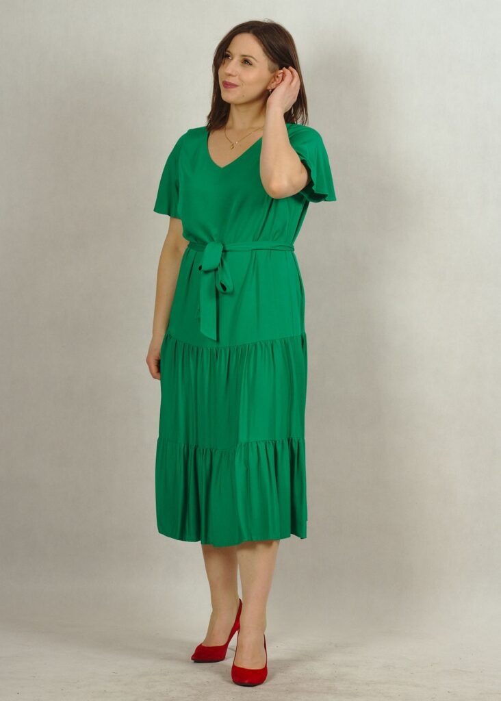 Sukienka jednokolorowa zielona z falbanami plus size /704/