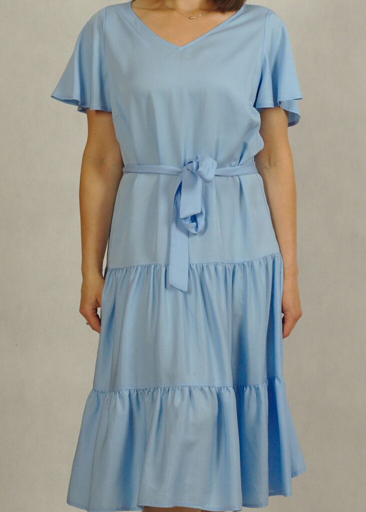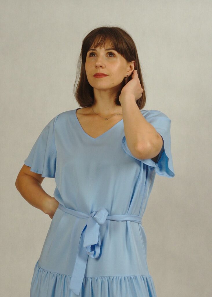 Niebieska sukienka z wiskozy to idealna propozycja na lato, wesele czy imprezę.
