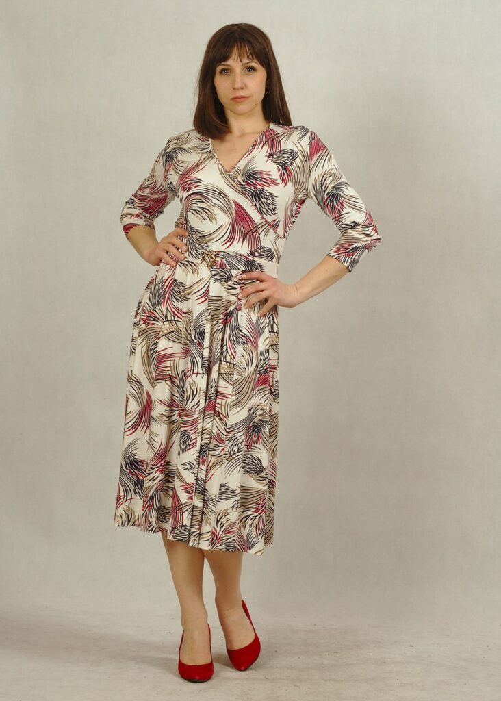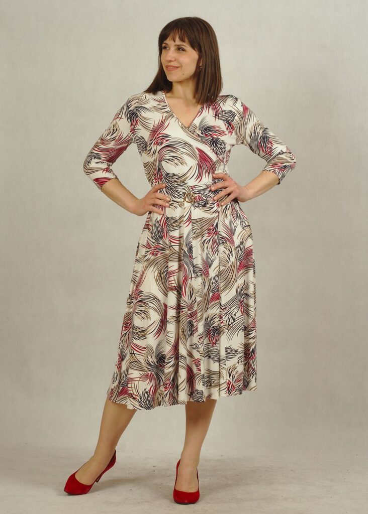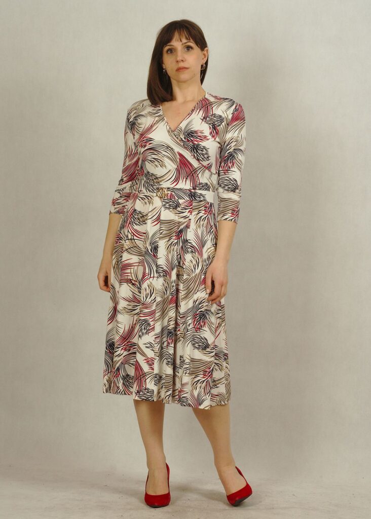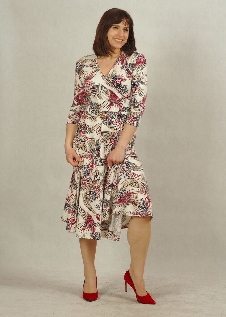Sukienka z kopertowym dekoltem to nowa propozycja dla Damy, która doskonale podkreśla biust oraz talię.