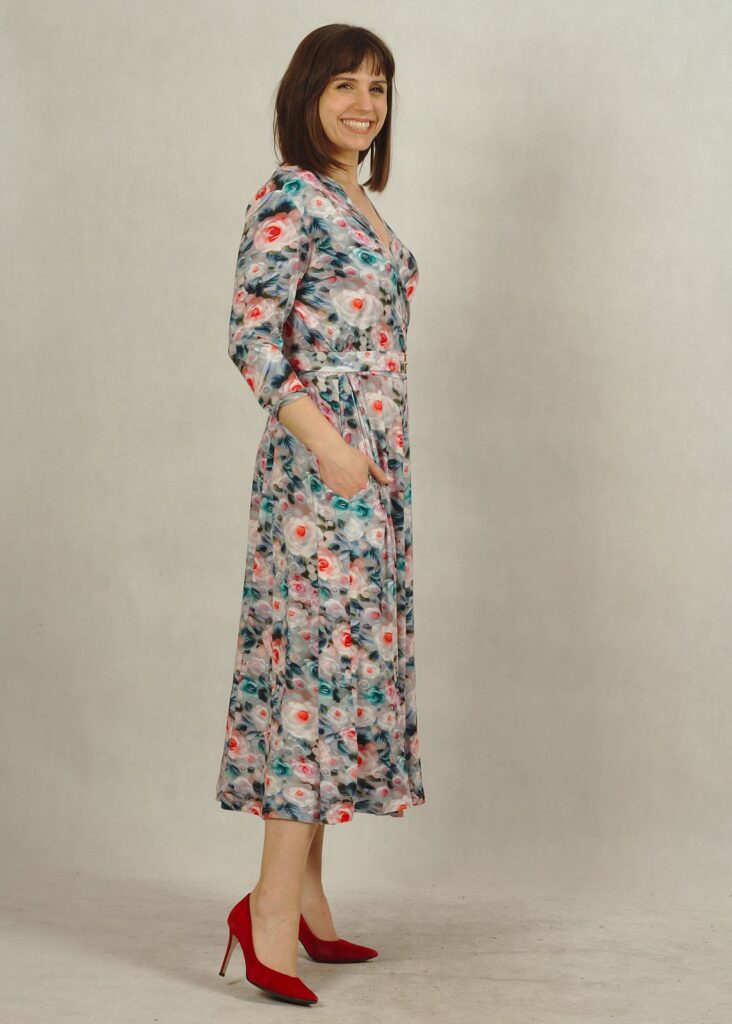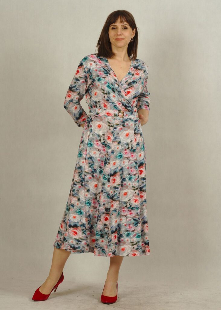 Stylowa sukienka z kopertowym dekoltem to propozycja stworzona z myślą o kobietach, które chcą subtelnie podkreślić biust i talię.