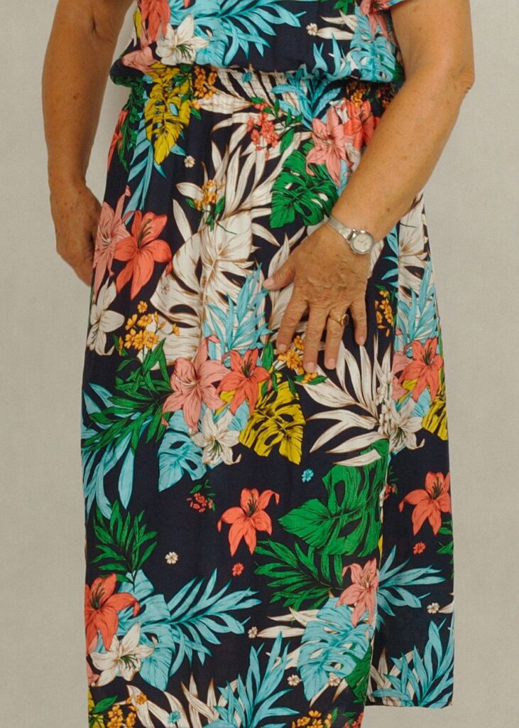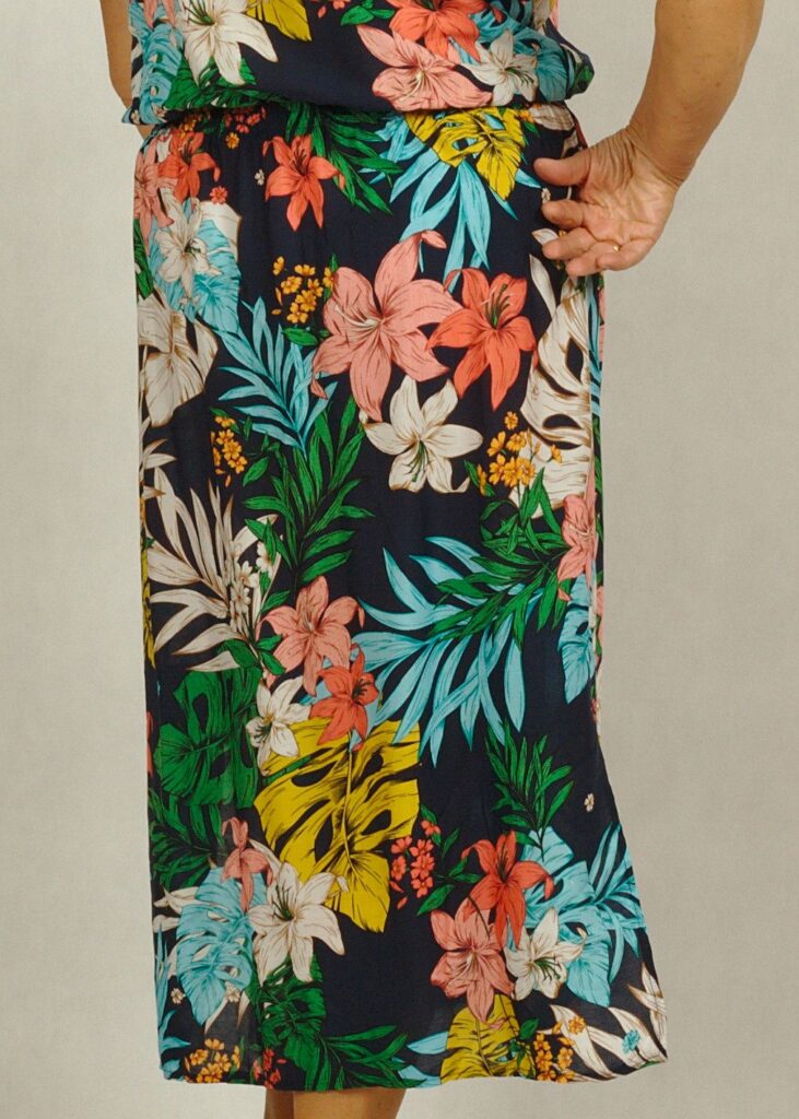 Sukienka uszyta z wielką dbałością o szczegóły i w bardzo ciekawym princie kwiatowym.