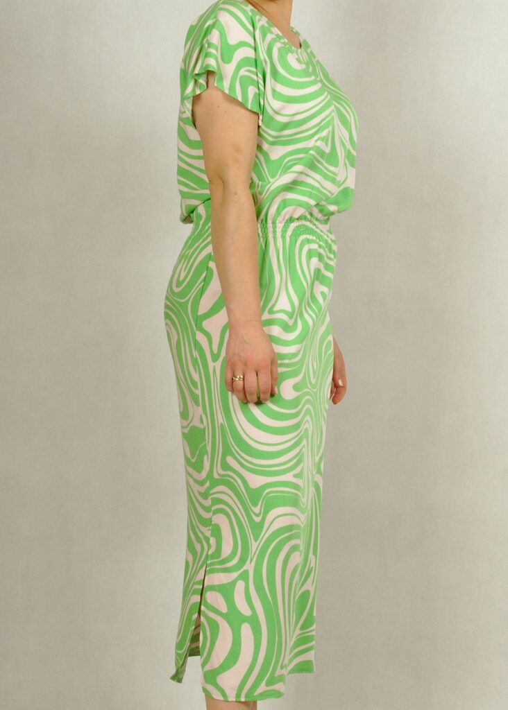 Sukienka midi z gumką w talii w zielone wzory /774/