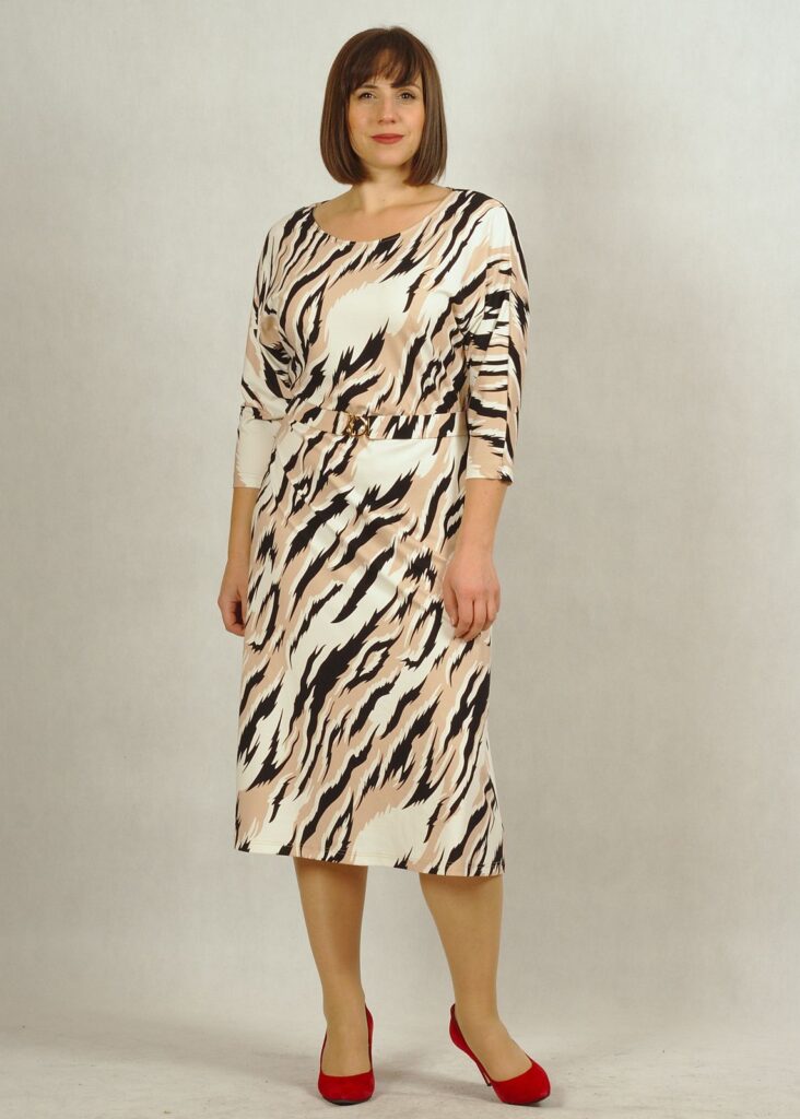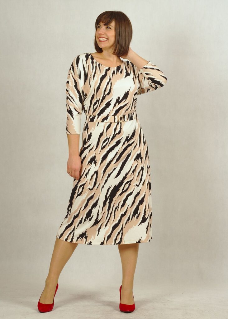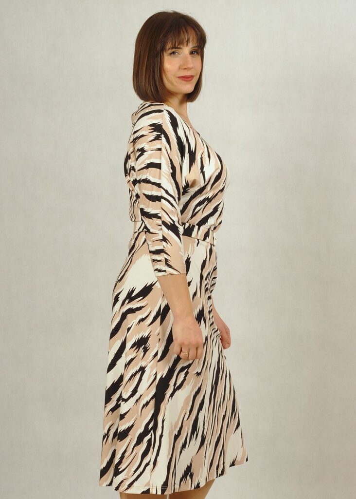 Sukienka z dzianiny z dużym udziałem wiskozy – daje to gwarancję komfortu.