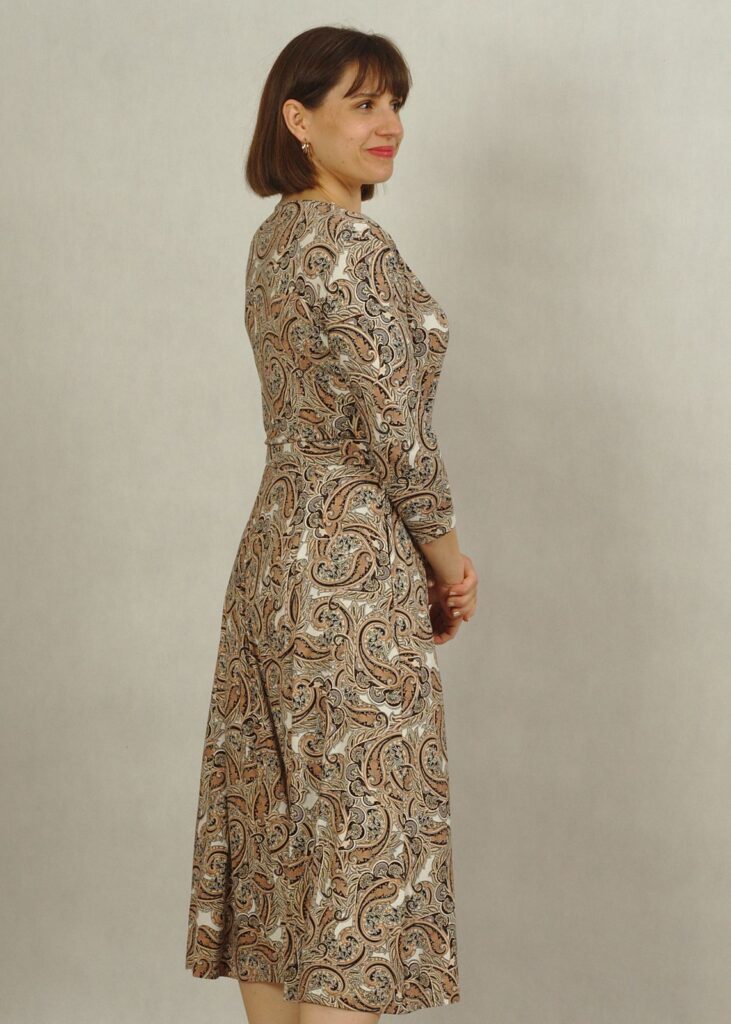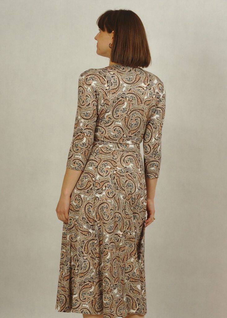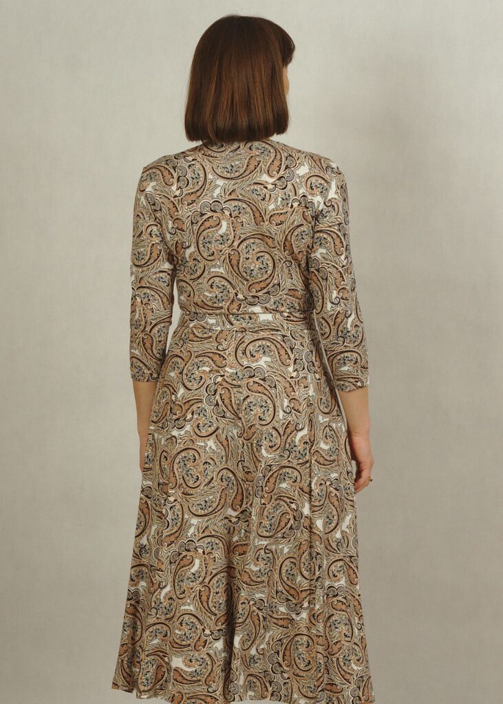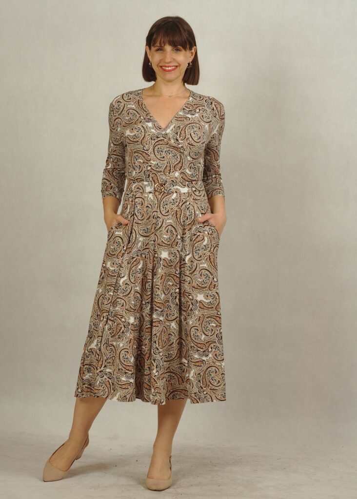 Sukienka midi z kopertowym dekoltem w beżowe paisley /757/