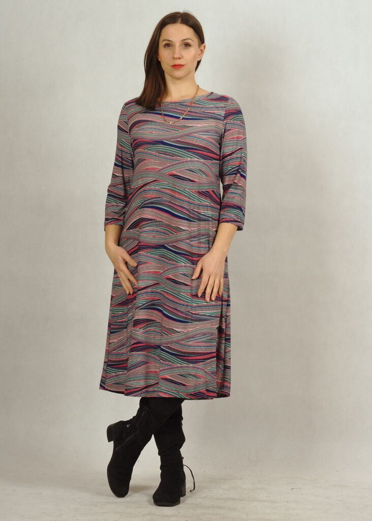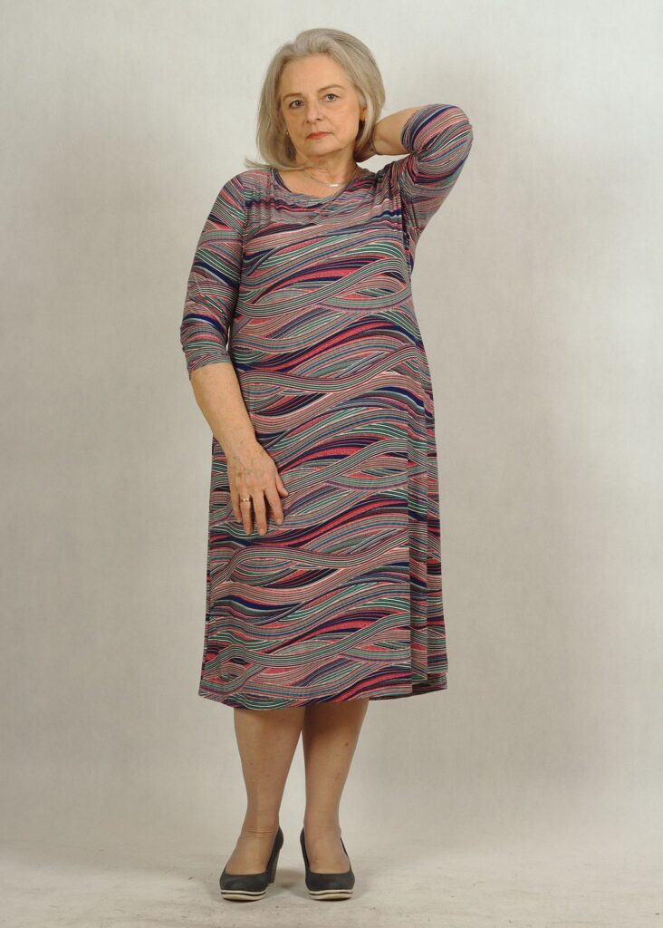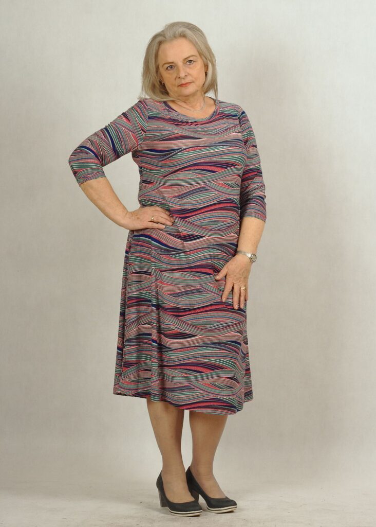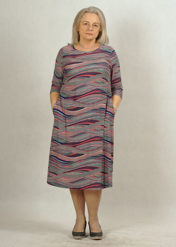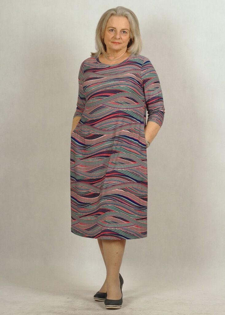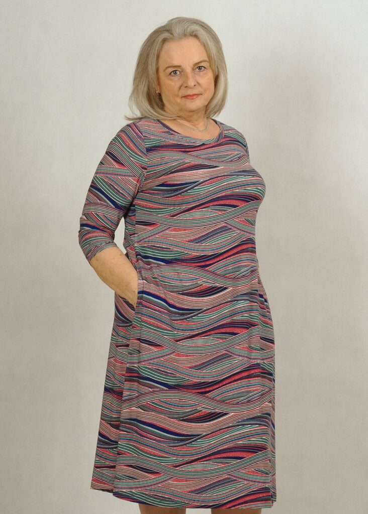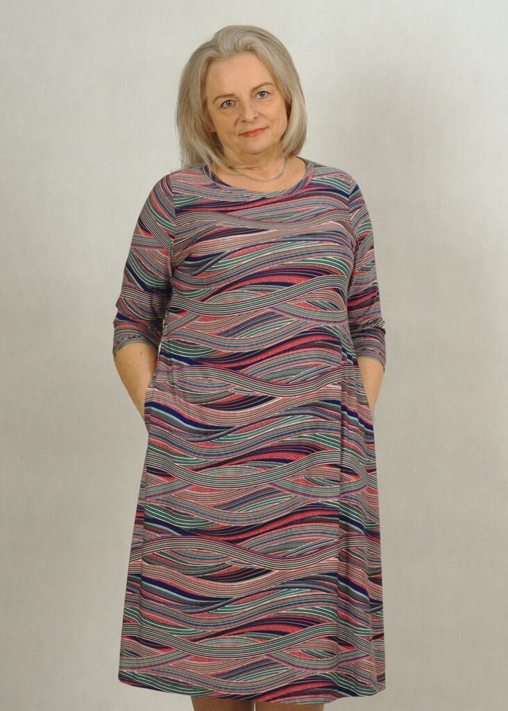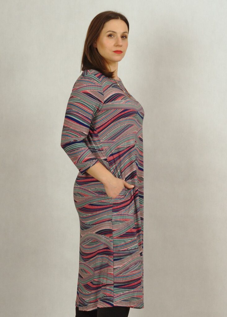 Sukienka oversize z kieszeniami w fale w odcieniach różu /574/